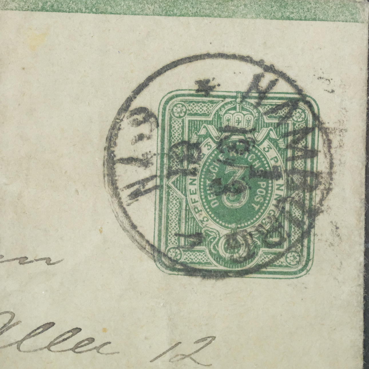 1 Postkort skickat från Suez till Hamburg 1913, 1 vykort med motiv från Leningrad skickat från Poznan till Växjö 1960 samt del av tyskt brev.