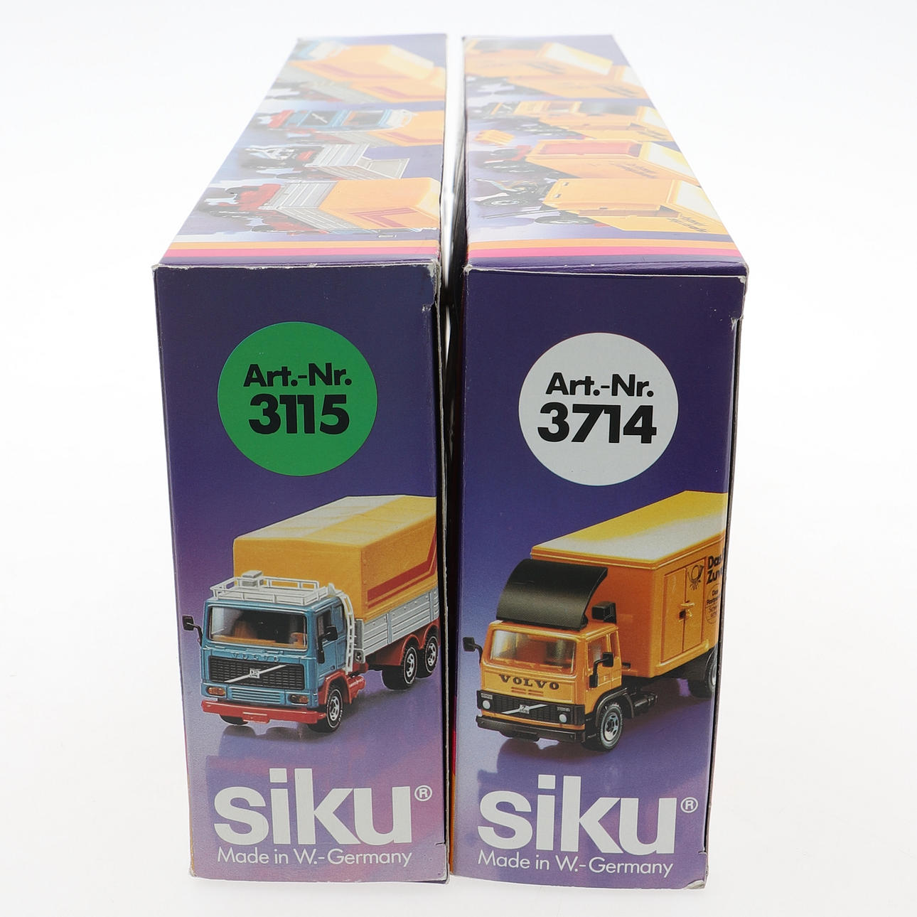 Volvo F7, 3714, Posten, längd ca 31 cm. Volvo F12, 3115, Fraktarna, längd ca 31 cm. I originalförpackning.