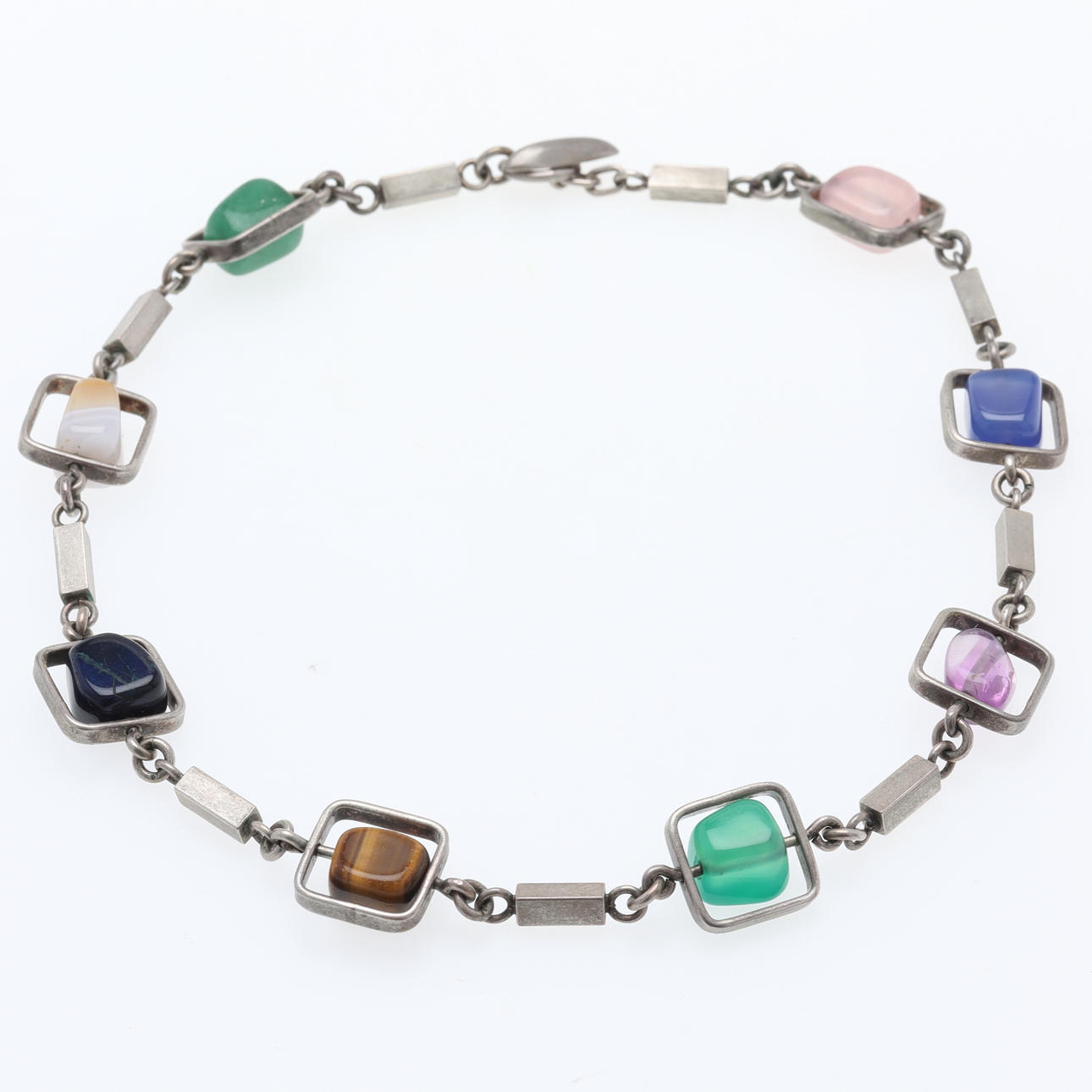 3852616. ARVO SAARELA. Collier, silver med halvädelstenar, stavlänk.