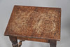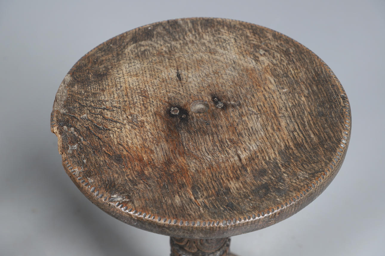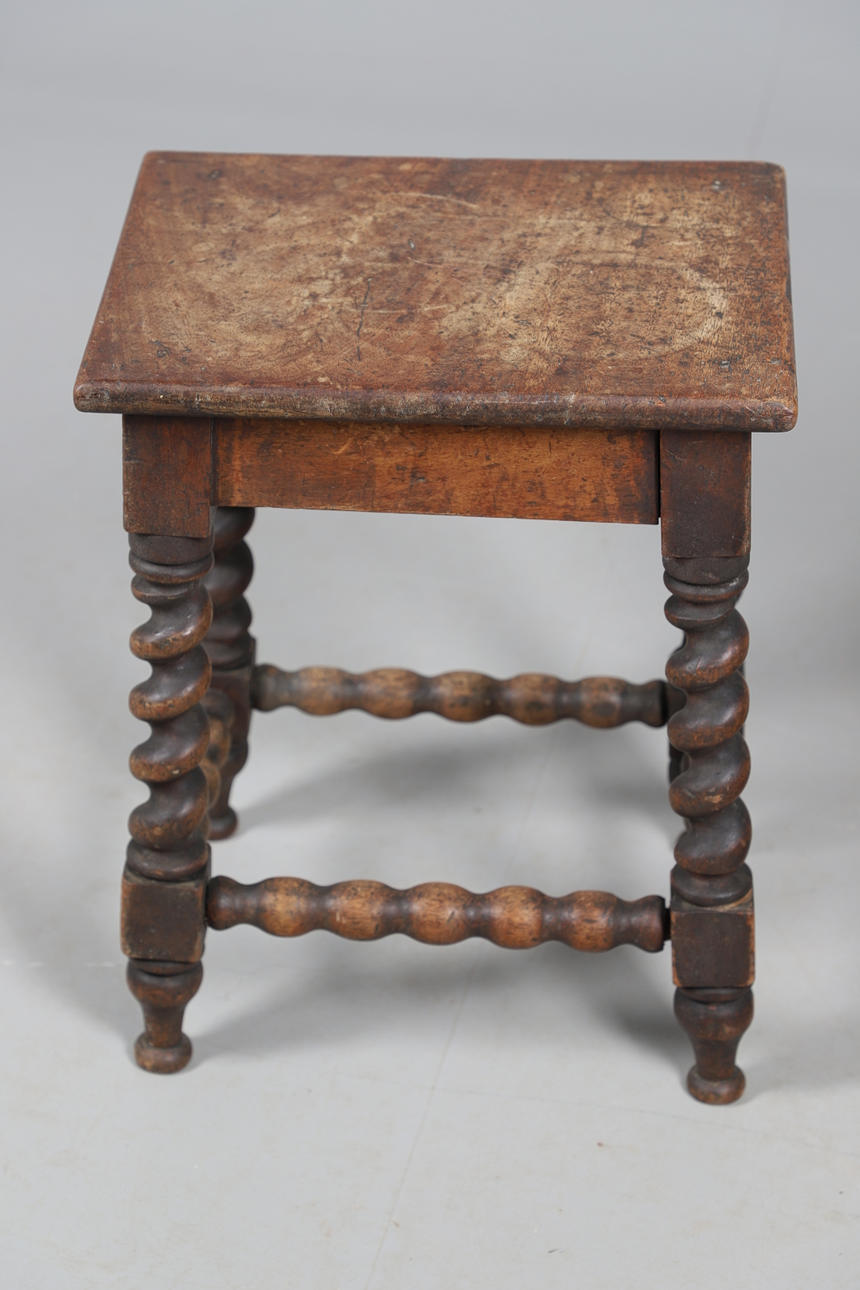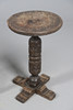 Ett cirkulärt toppbord med en snidad pelare och fyra formade fötter (57 cm höga, 37 cm tvärs), även med ett annat litet bord med vända ben (37 cm x 29 cm). (2).