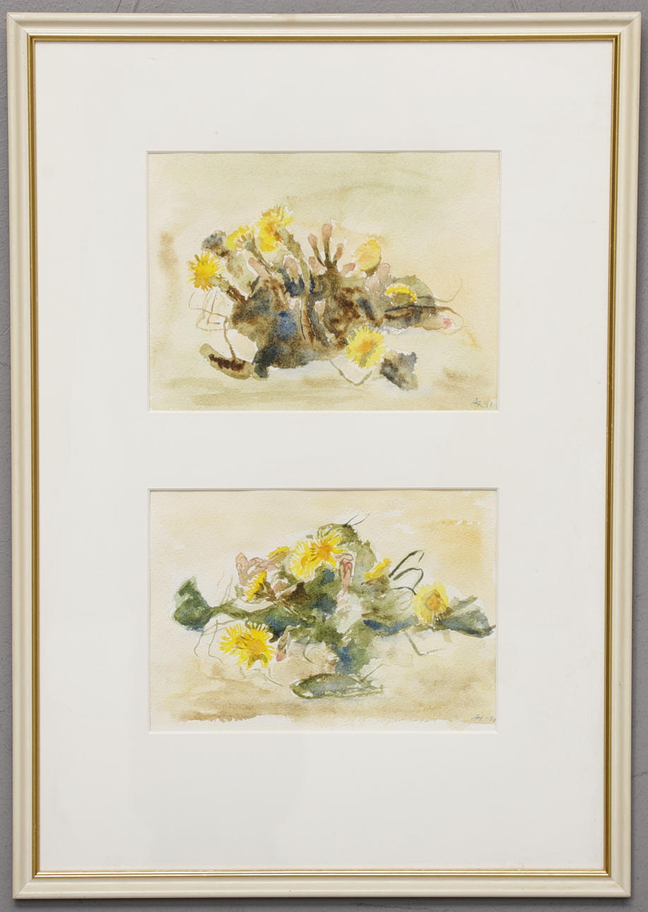 3854350. OIDENTIFIERAD KONSTNÄR. "Tussilago", akvarell, signerad.
