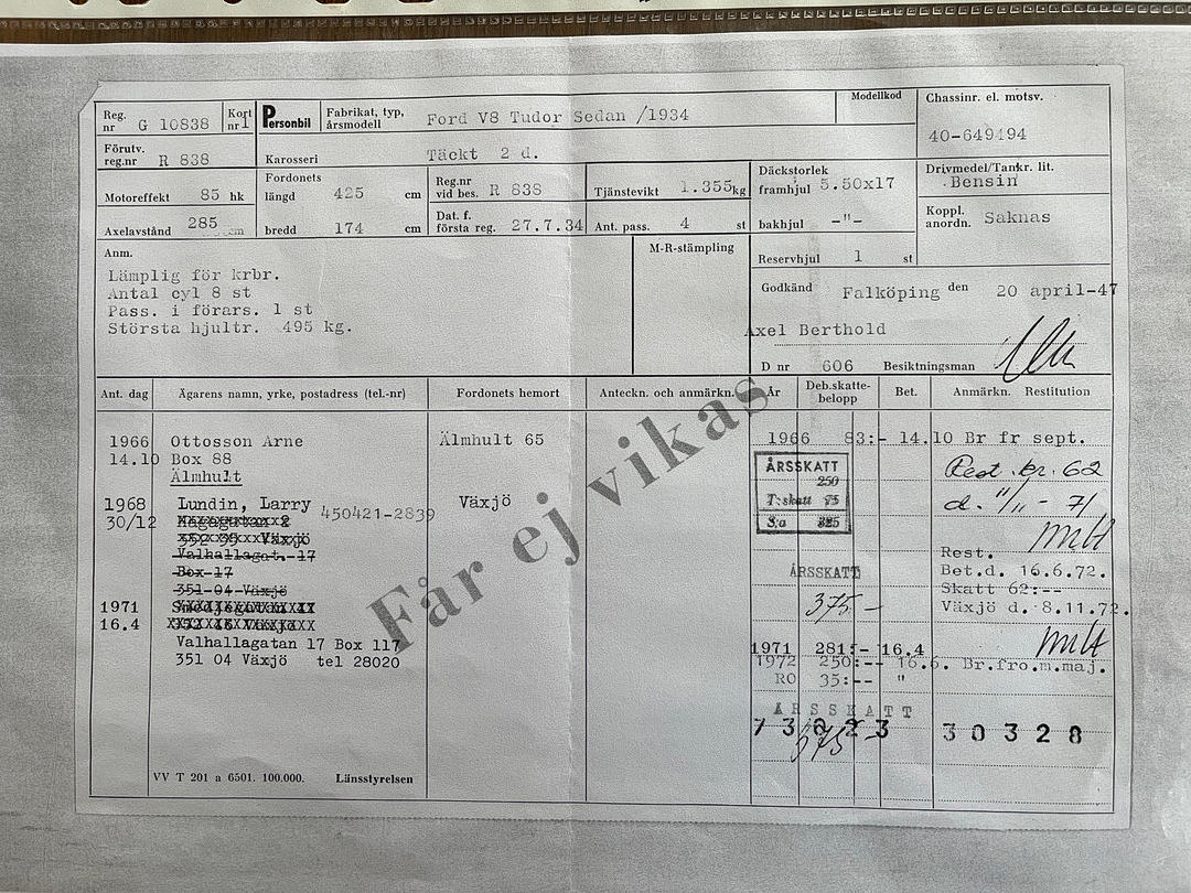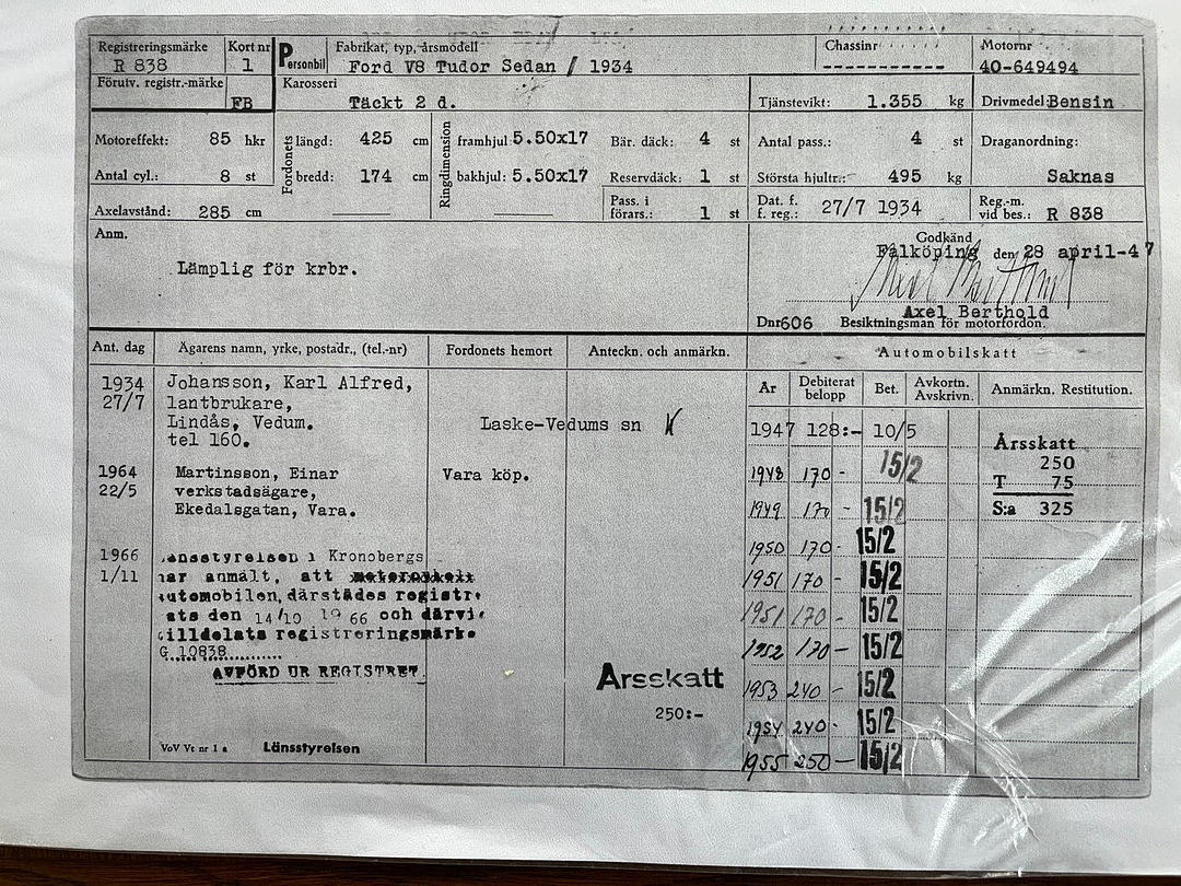 Årsmodell: 1934, i trafik i Sverige sedan dess.
