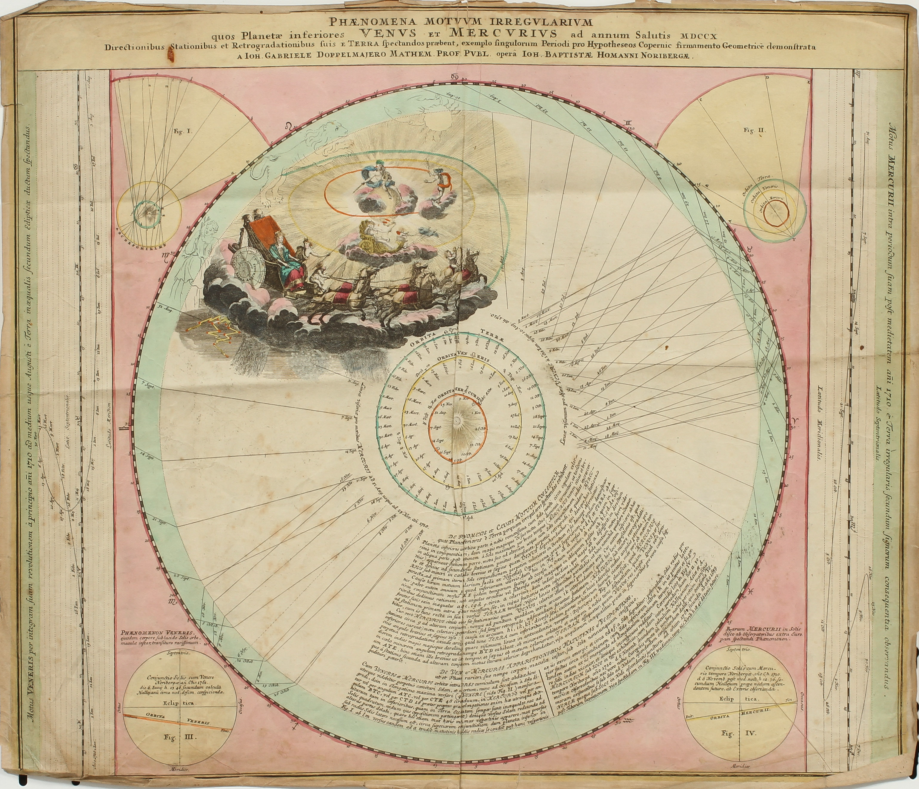 385922. JOHAN GABRIEL DOPPELMAYR OCH JOHANN BAPTIST HOMANN. Kolorerat kopparstick. "Phaenomena Motuum Irregularium...".