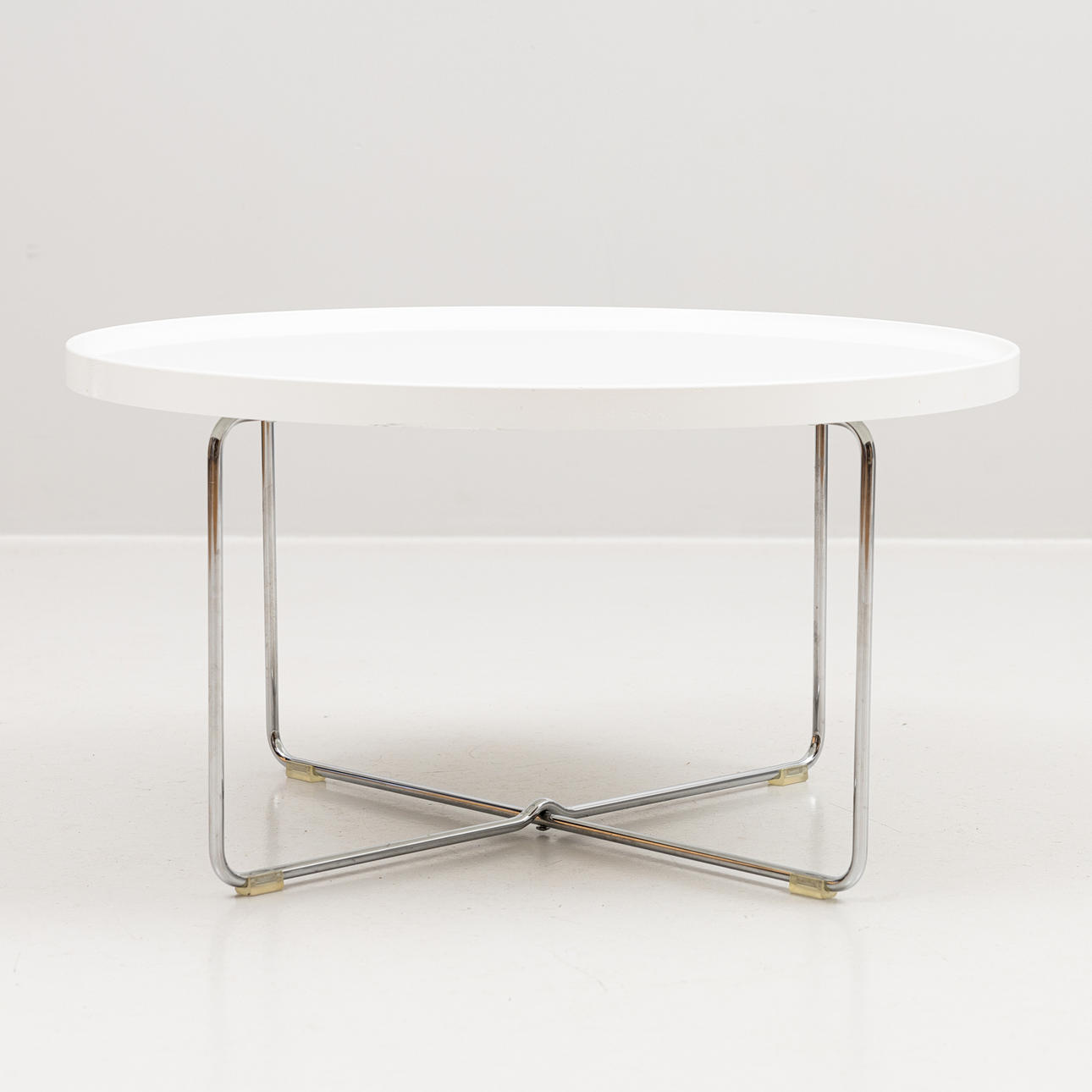 Skiva i vit laminat. Kromade ben.