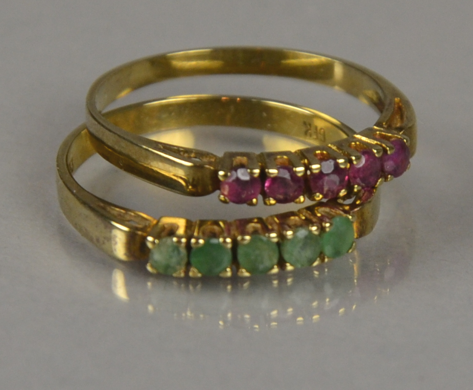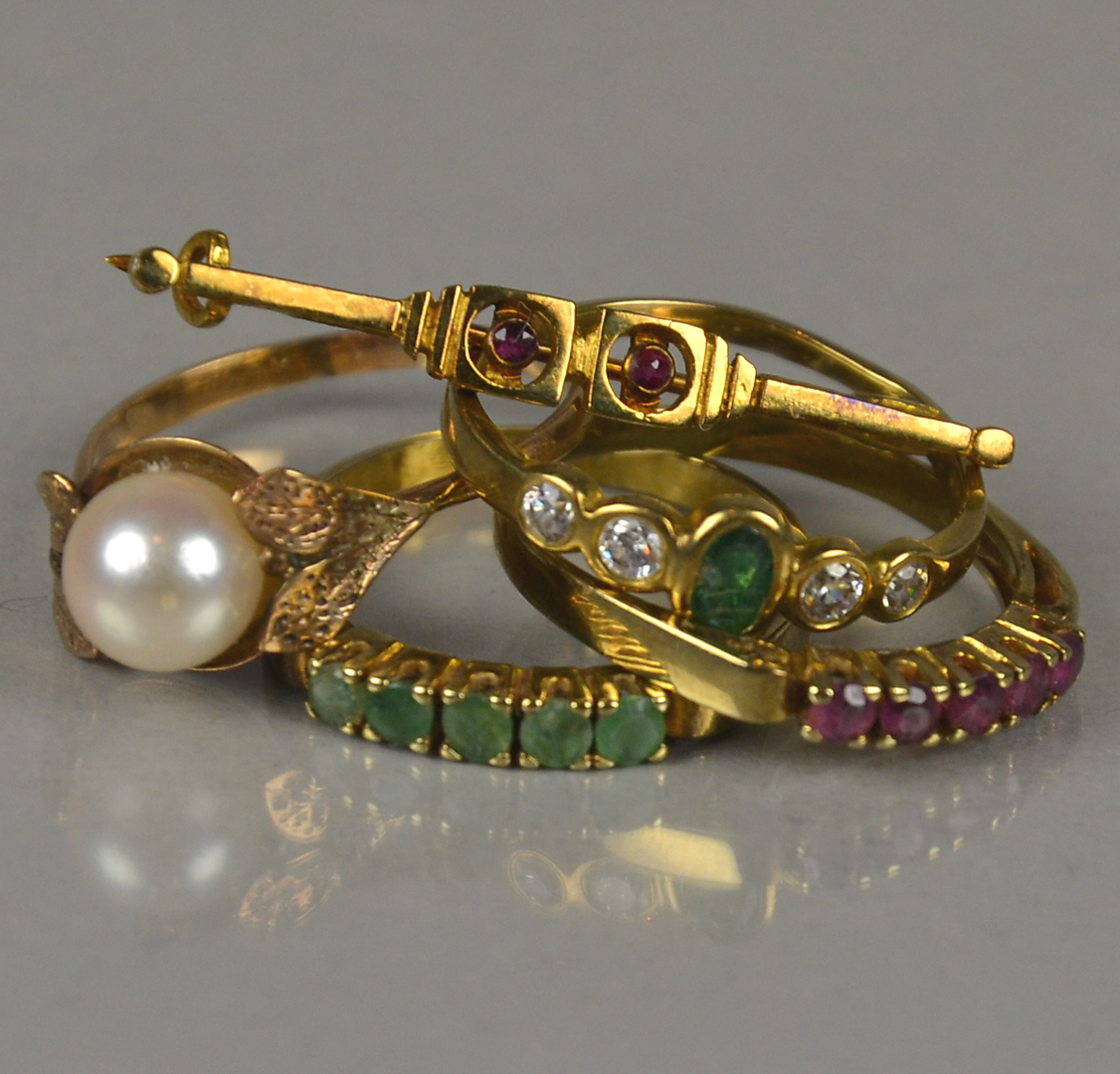 386046. BUNT MASSA RINGAR OCH EN GULD BROSCH.