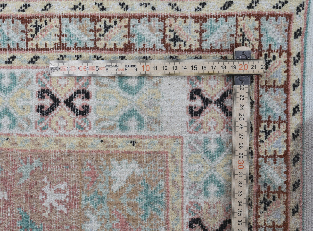 Färger gående i rosa, grönt och beige.