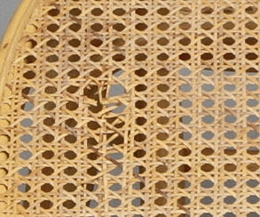 Bruksslitage, en stol med skada i rotting ca 6 cm.