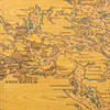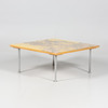Skiva av ask, plexiglasskiva med tryckt dekor av Stockholms Skärgård. Längd 100 cm, bredd 100 cm, höjd 44 cm.