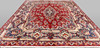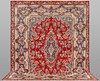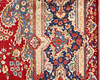 Huvudfält med röd bottenfärg, mittmedaljong samt hörnornament. Huvudfältet är utsmyckat med stiliserade blommor och växtlighet. Huvudbård med stiliserade motiv bestående av flora. Polykroma färger.