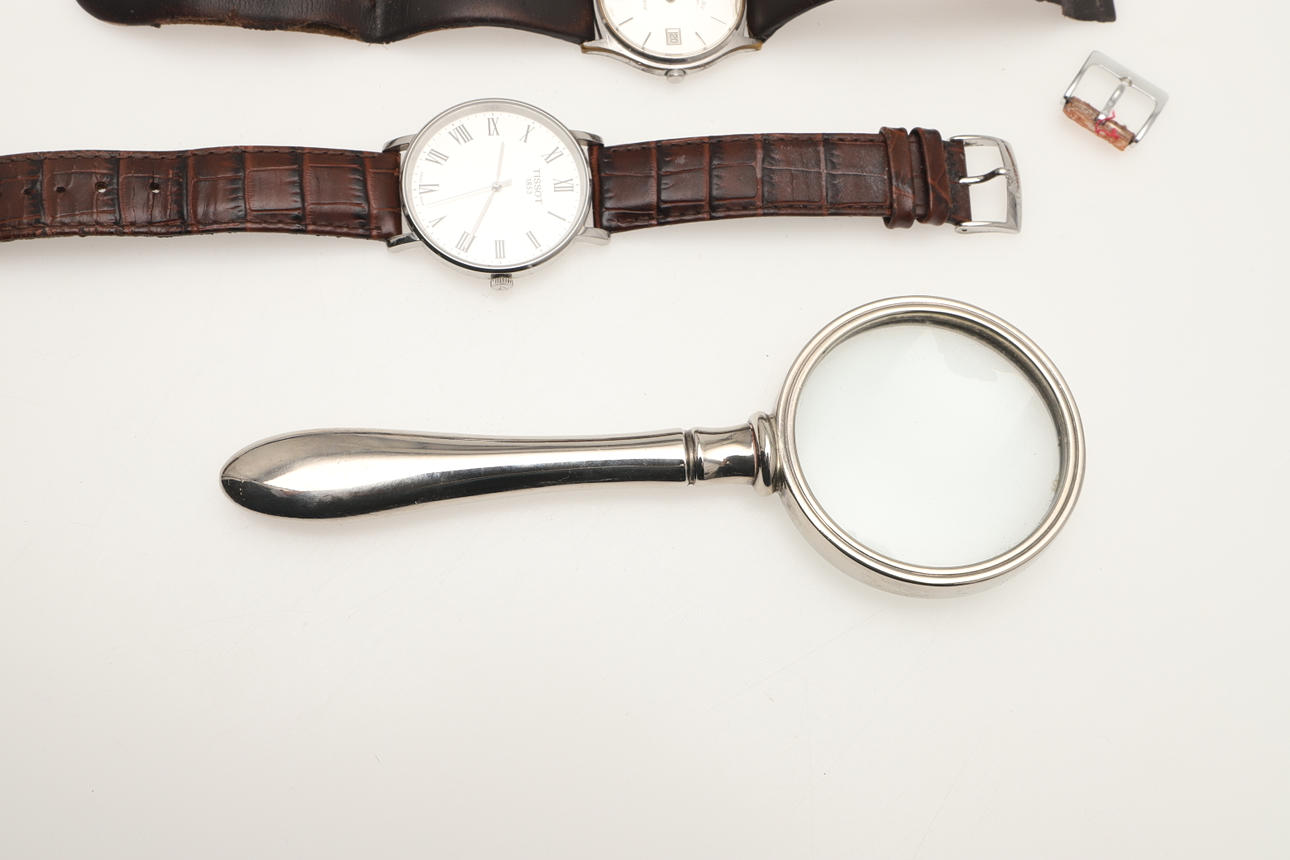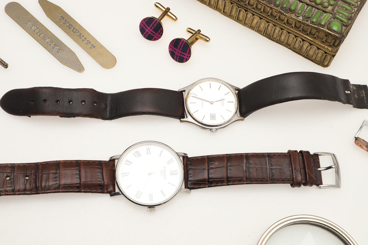 manschettknappar, två herrklockor från Tissot och Rotary.