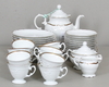 12 kaffekoppar, 12 kaffefat, 12 asseitter, kaffekanna, sockerskål, gräddkanna.