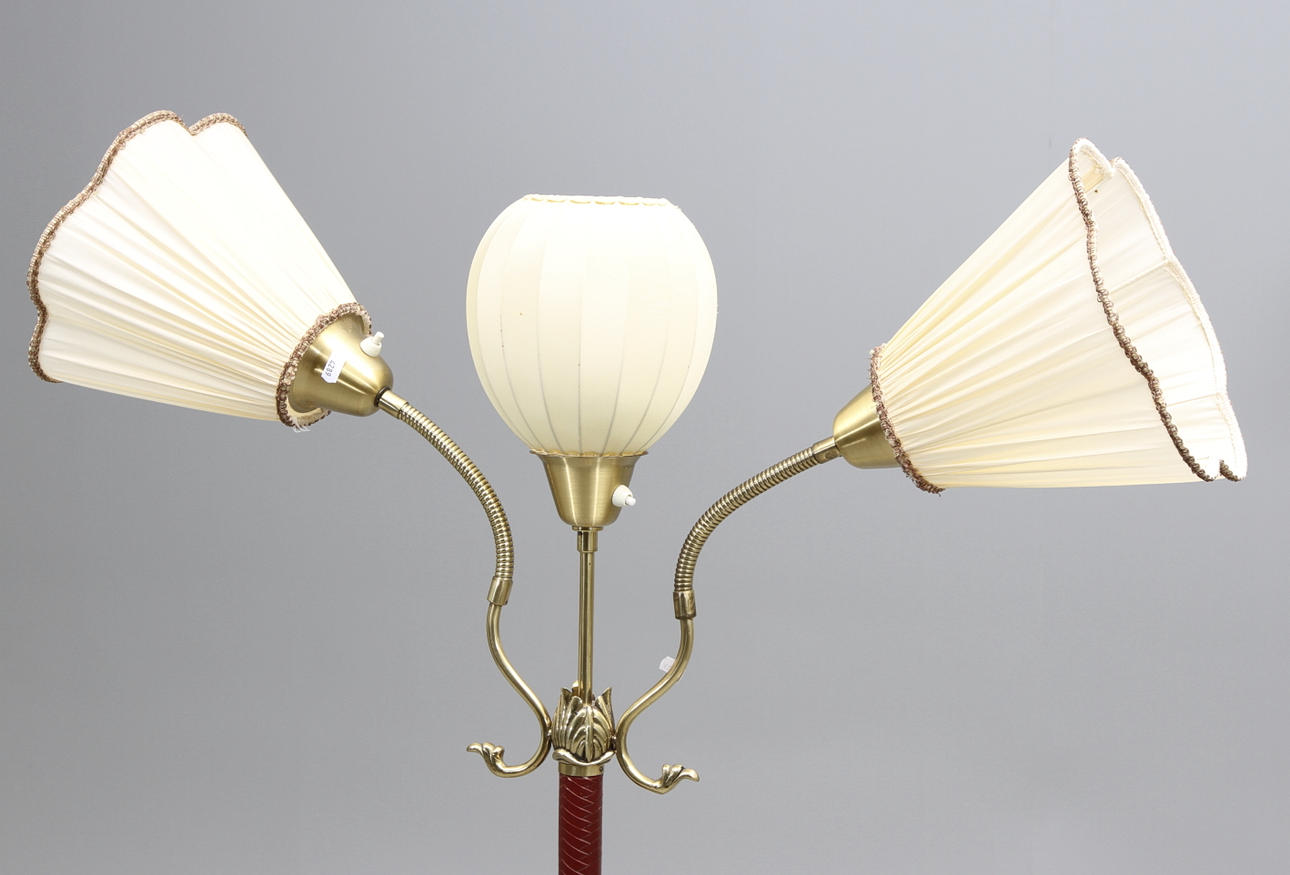 Mässing, 3 ljusarmar. Höjd 170 cm.