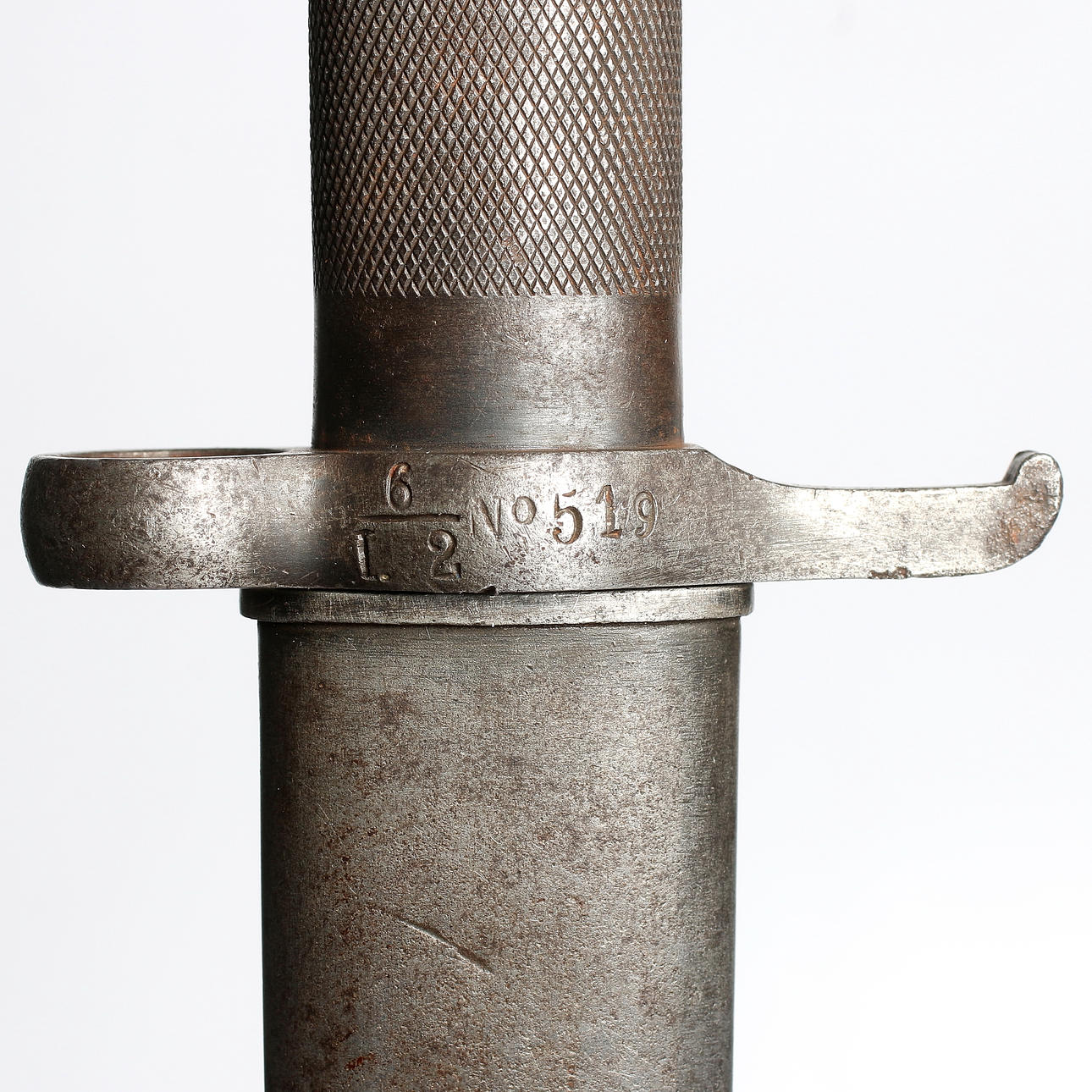 Bajonett märkt No. 519, balja märkt No. 592. Total längd 35,7 cm.