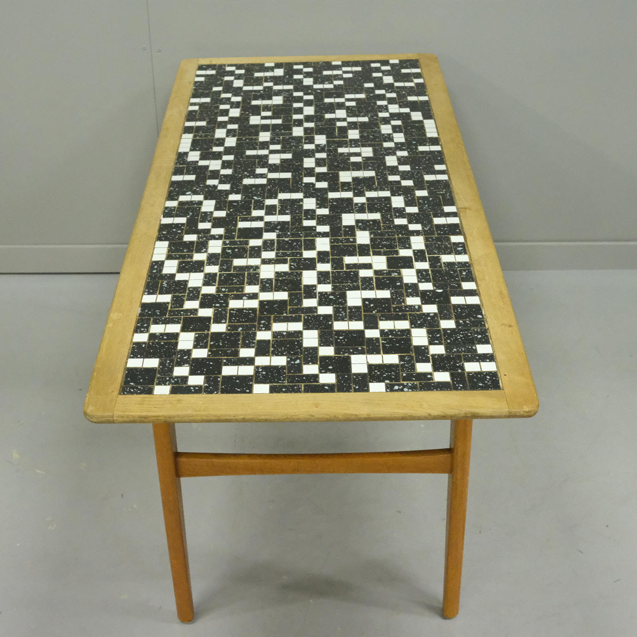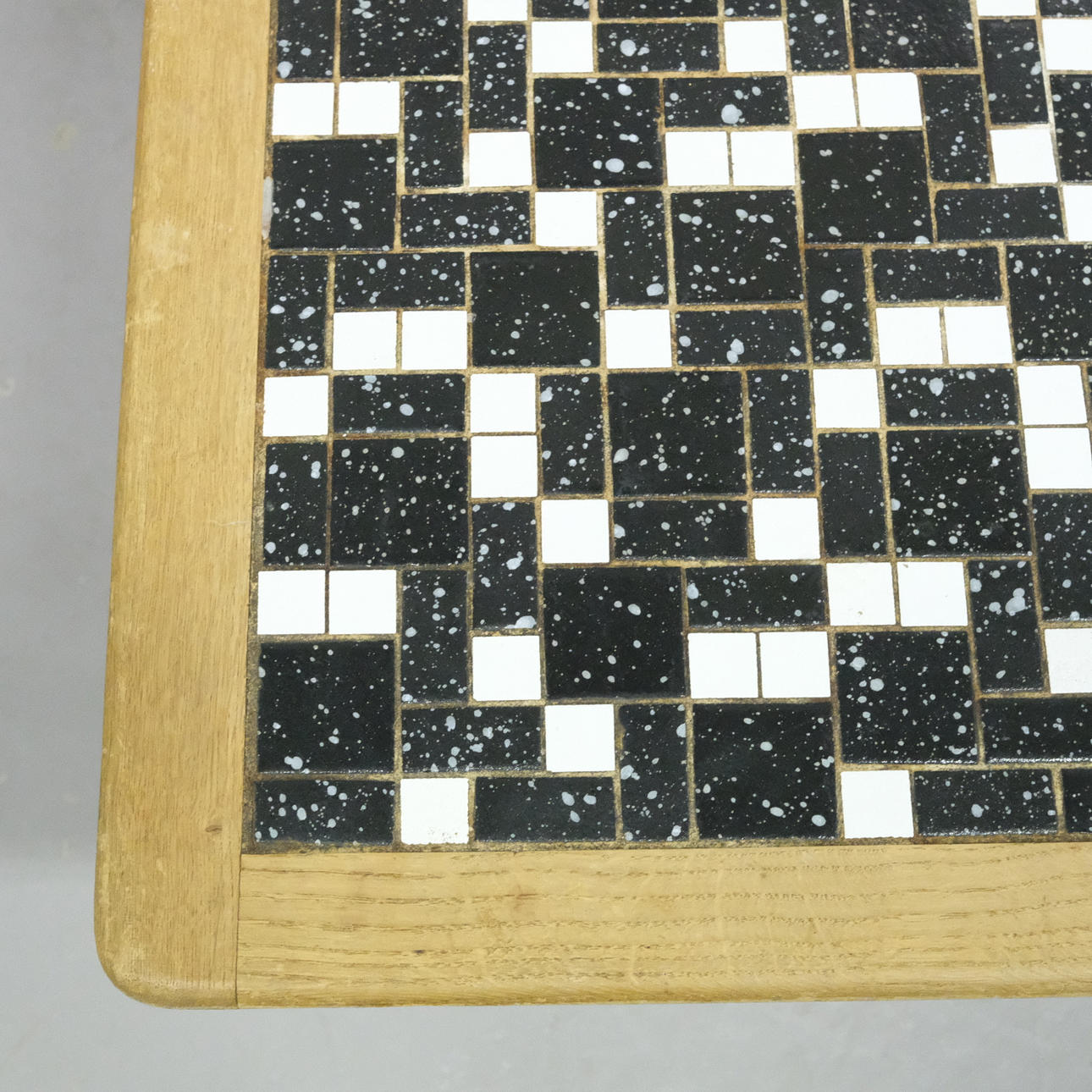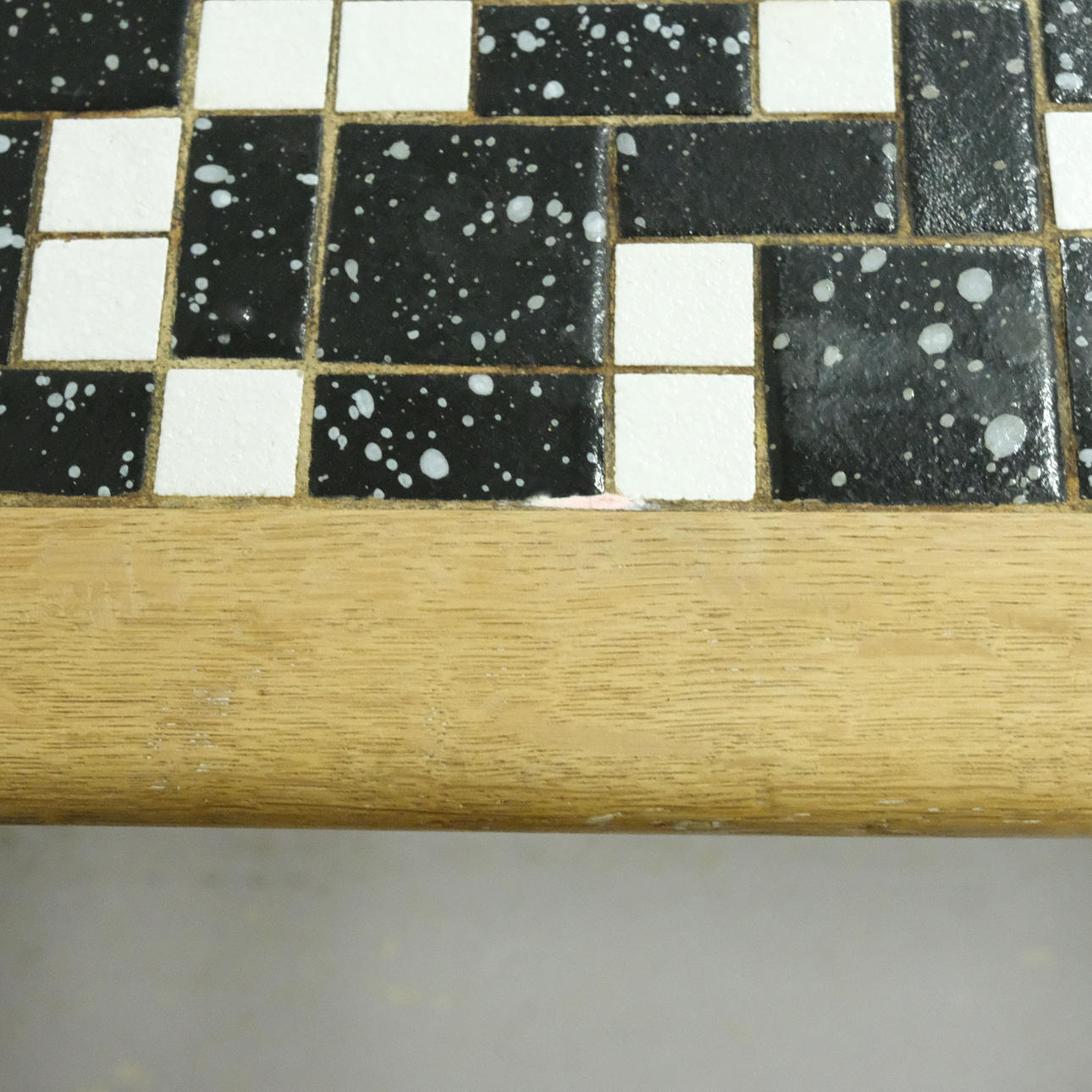 Stomme av ek med msaik i svart ch vitt, höjd 56, 132x55 cm.