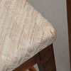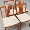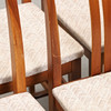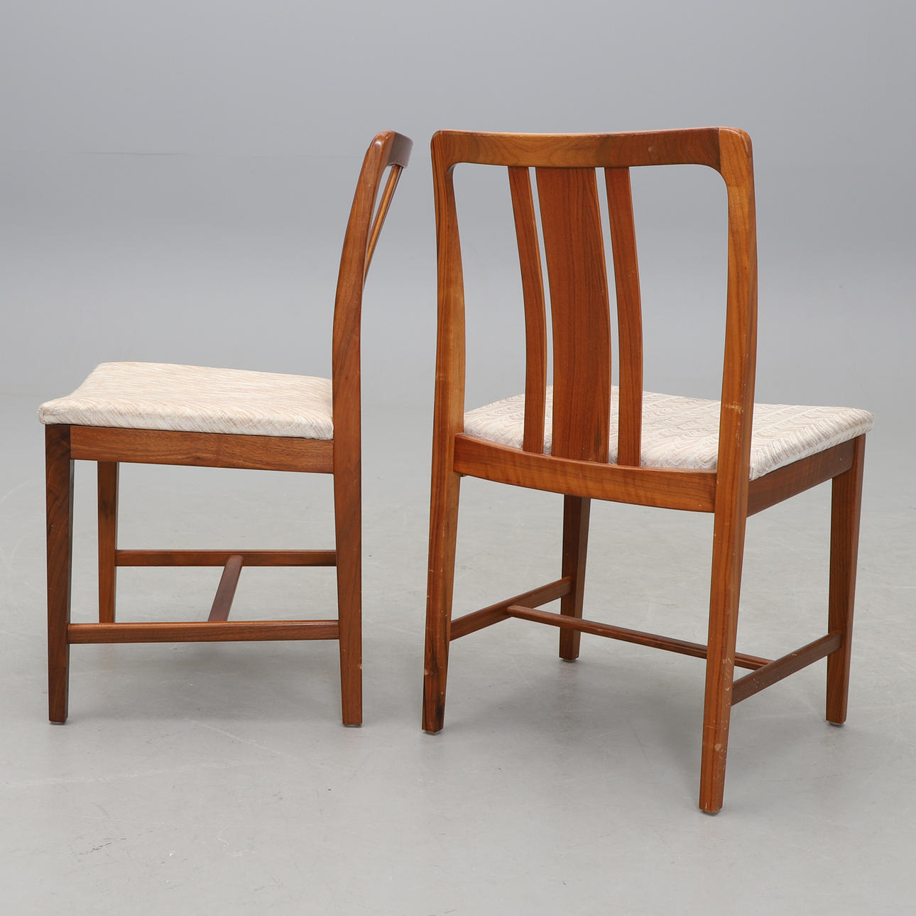 Stomme av valnöt. Textilklädd sits. Märkt. Bredd 47, höjd ca 80, sitthöjd 44 cm.