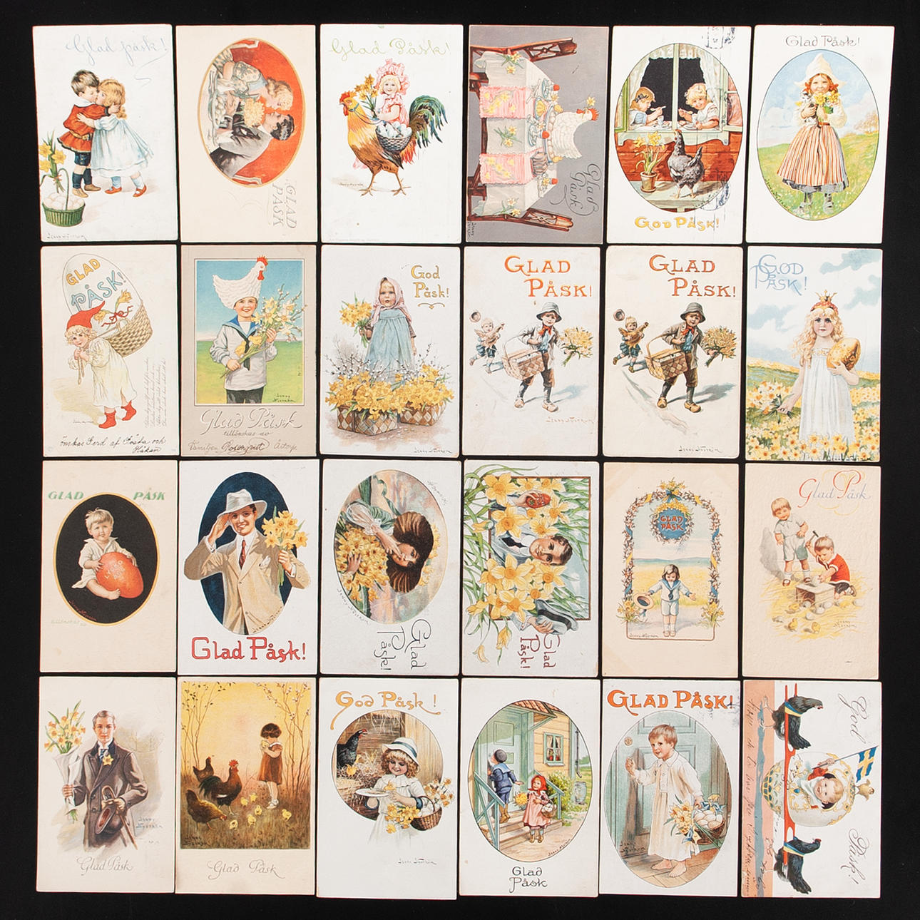 JENNY NYSTRÖM. PÅSKKORT, poststämplade 1900-1930. 64 st.