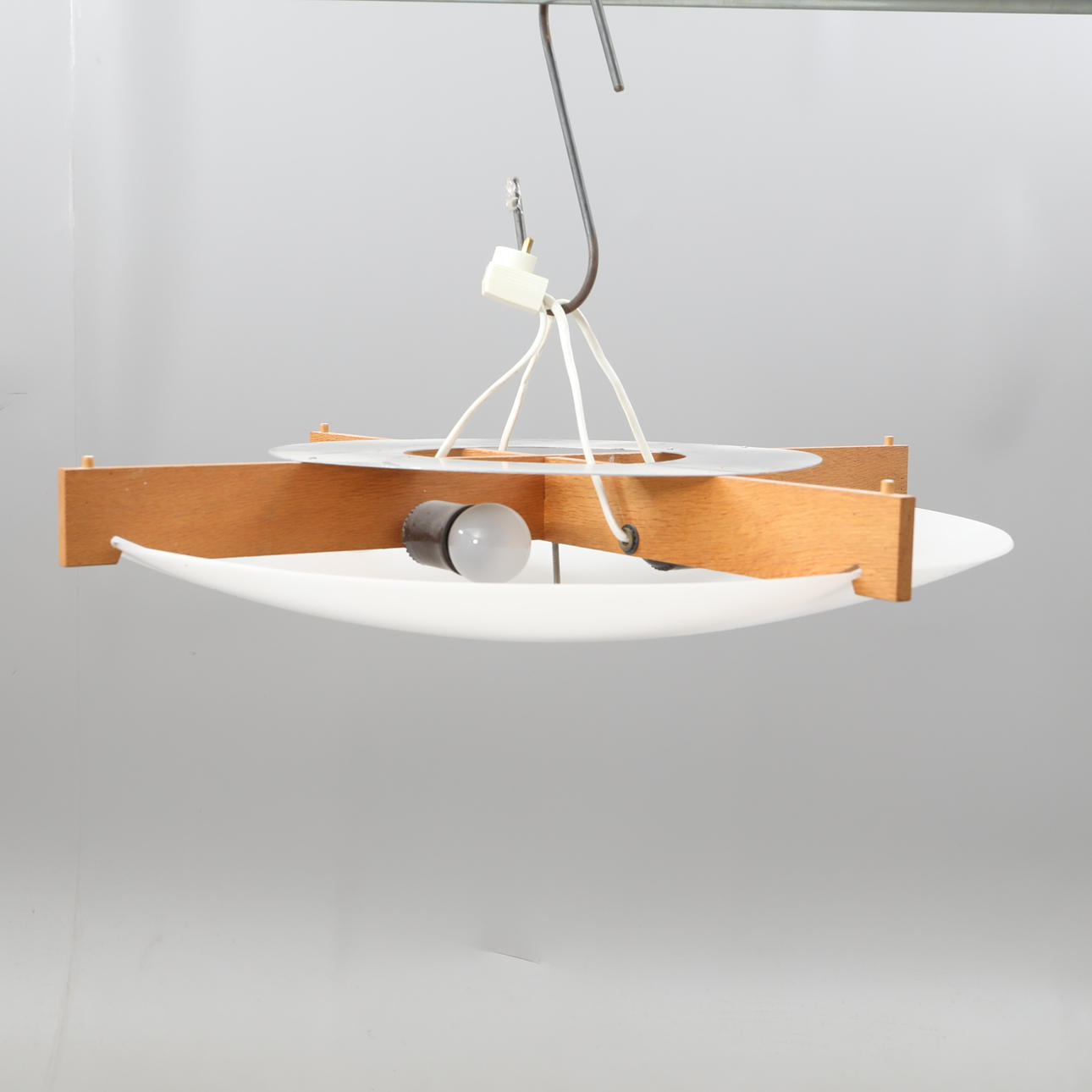 stomme i teak, skärm i vit plast, diameter 70 cm.