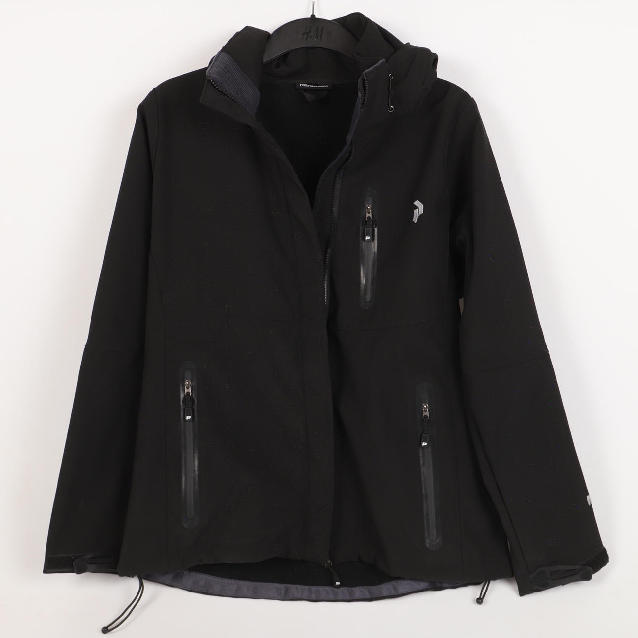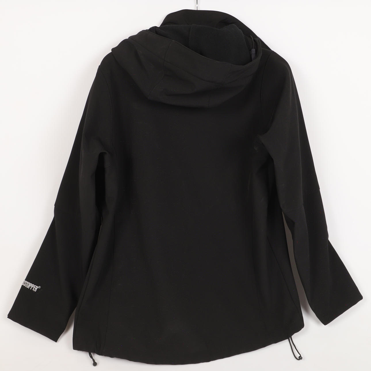 Svart damjacka med kapuschong, mikrofiber med fleecefoder, avtagbar kapuschong