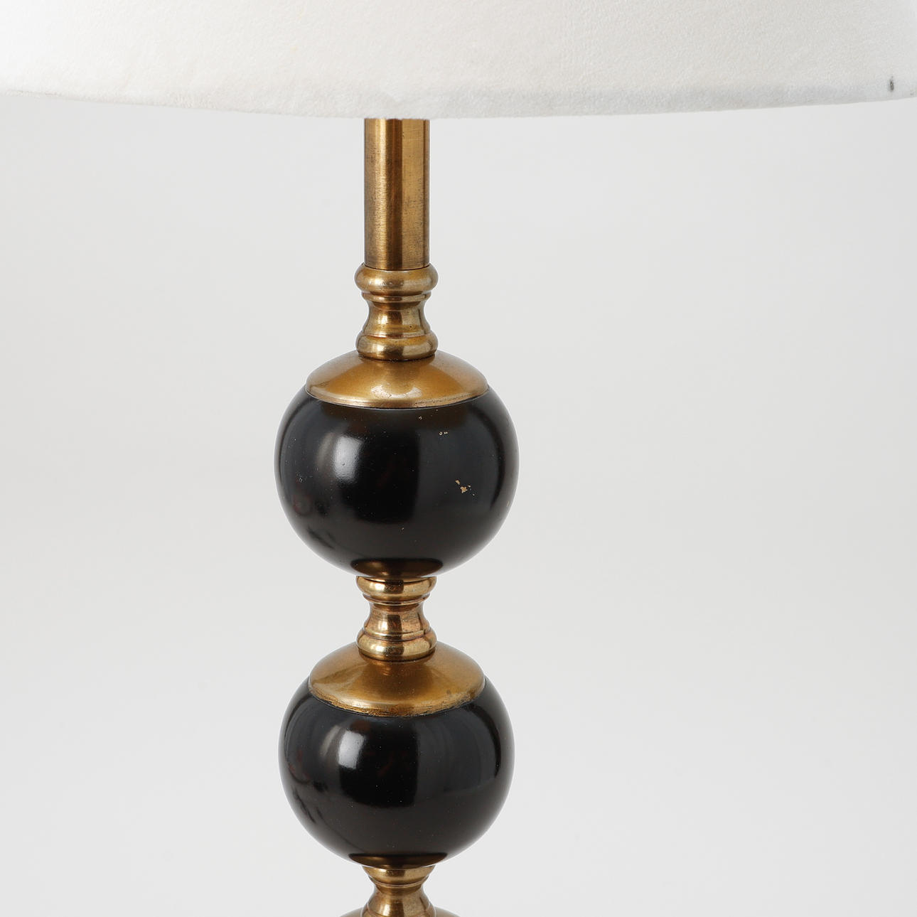 Metall. Ben med dekor av svärtade kulor. Höjd 55 cm med skärm 73 cm.