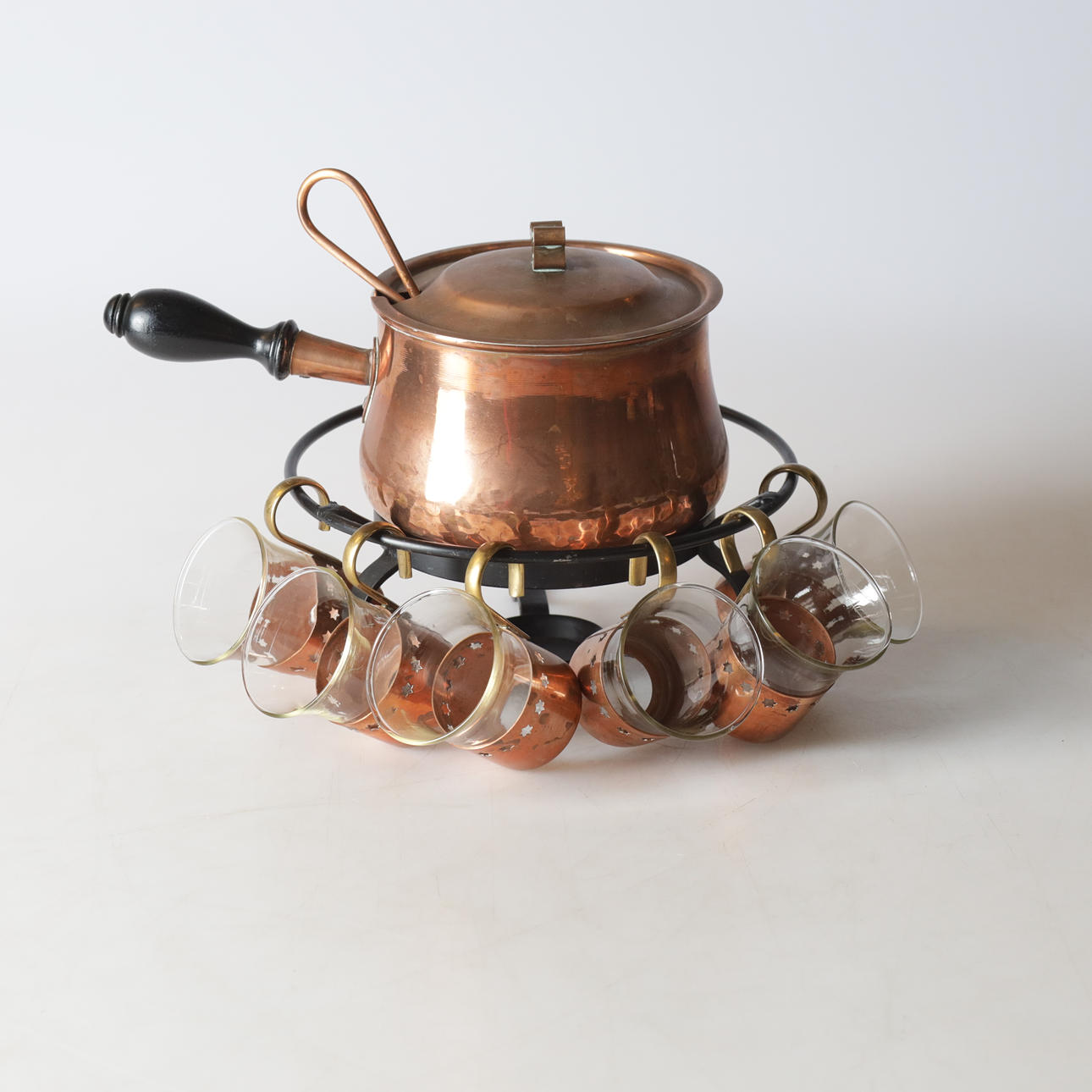Glöggset med värmare samt koppar Kopparnas höjd 6 cm.