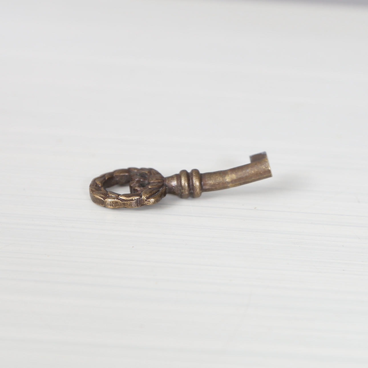 Löst ben, tröga lådor, lack med ställvis hårdare slitage/bortfall. Böjd nyckel. Mindre sprickor.