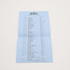 Inklusive tryckt lista på blått papper.