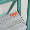 Bruksslitage. Stegens klädsel har släppt något i limningen.