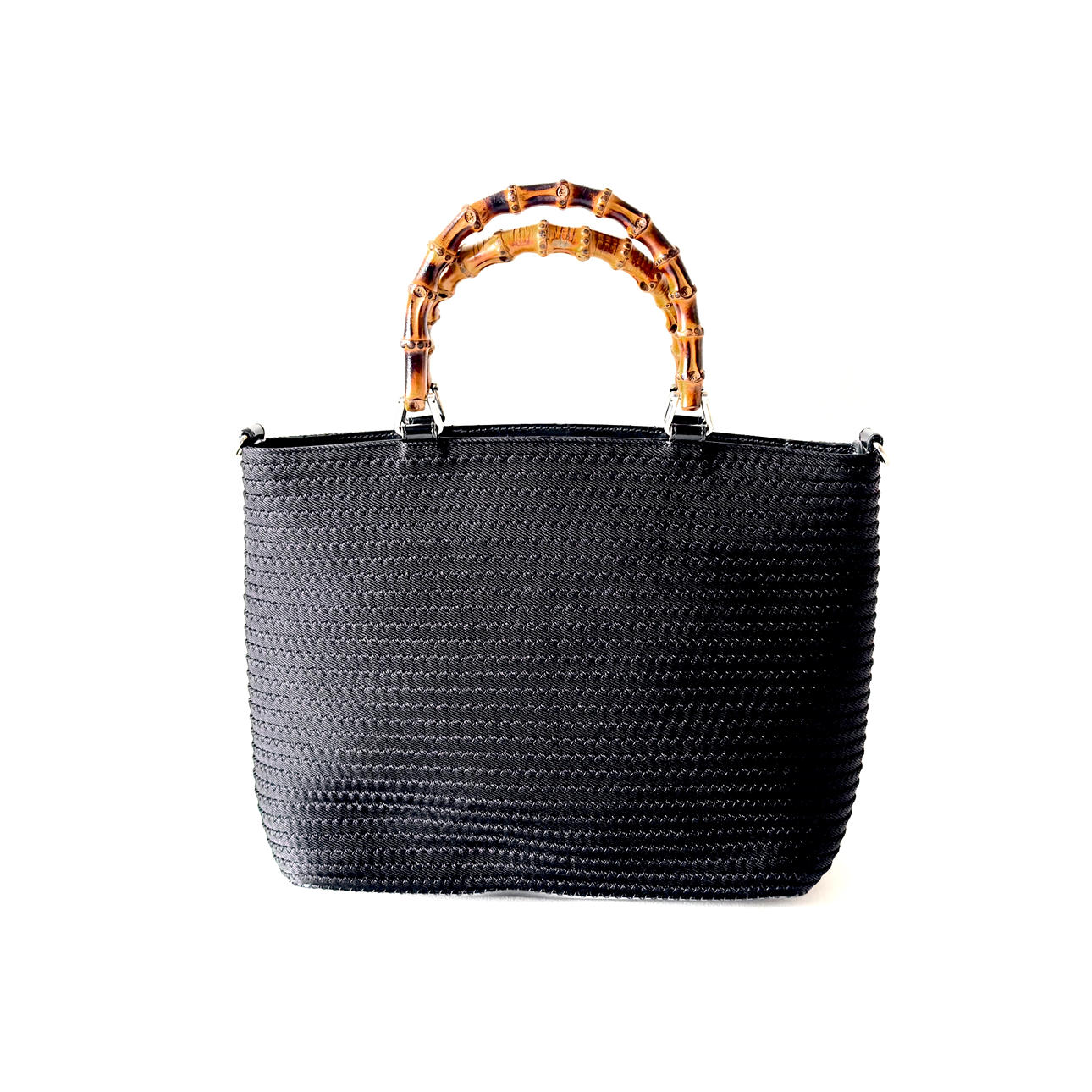 Designad av Tom Ford för 1996-kollektionen kombinerar denna Gucci Bamboo väska quiltad svart duk och lackläder med silverfärgad hårdvara. Det är en mångsidig tvåvägsväska med två bambuhandtag och en avtagbar rem. Interiören, fodrad med satin och inklusive en blixtlåsficka, förenar lyx med funktionalitet.