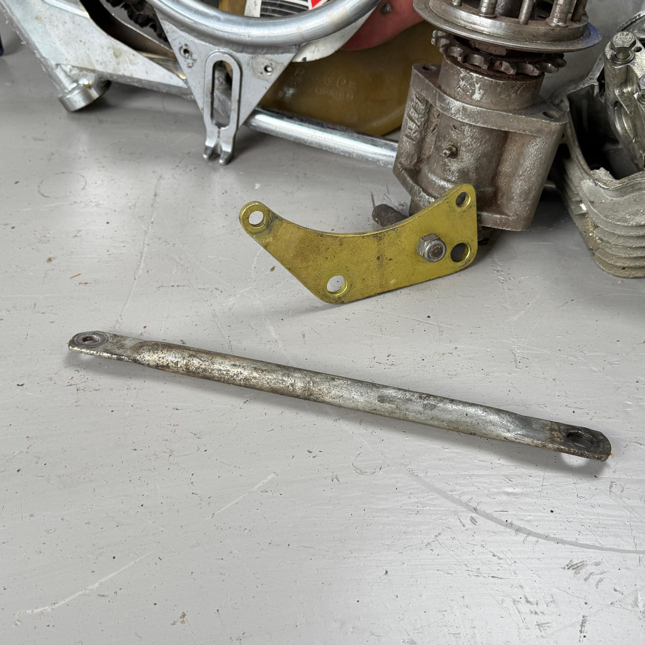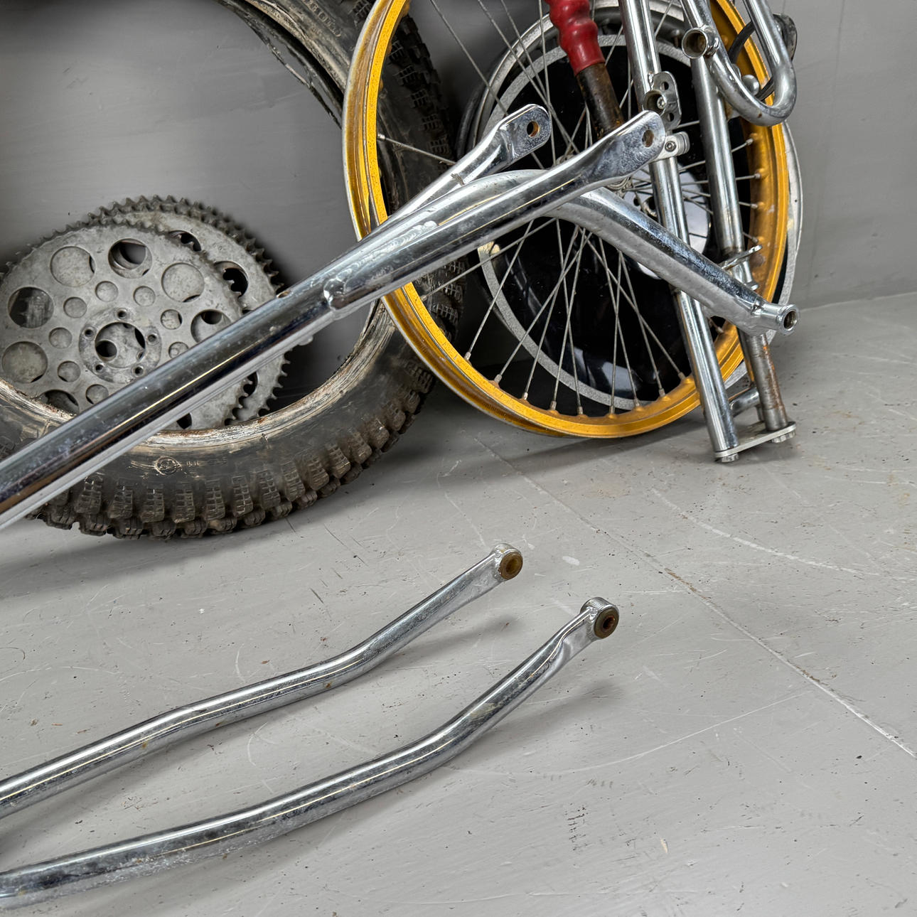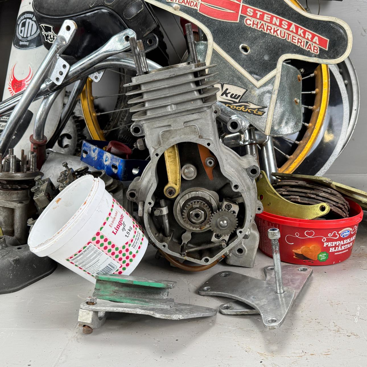 Cylinder, motorblock, ram, gaffel, hjul mm.