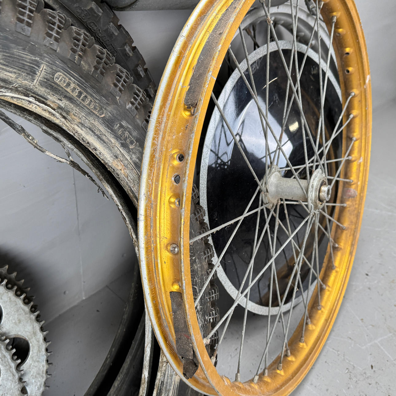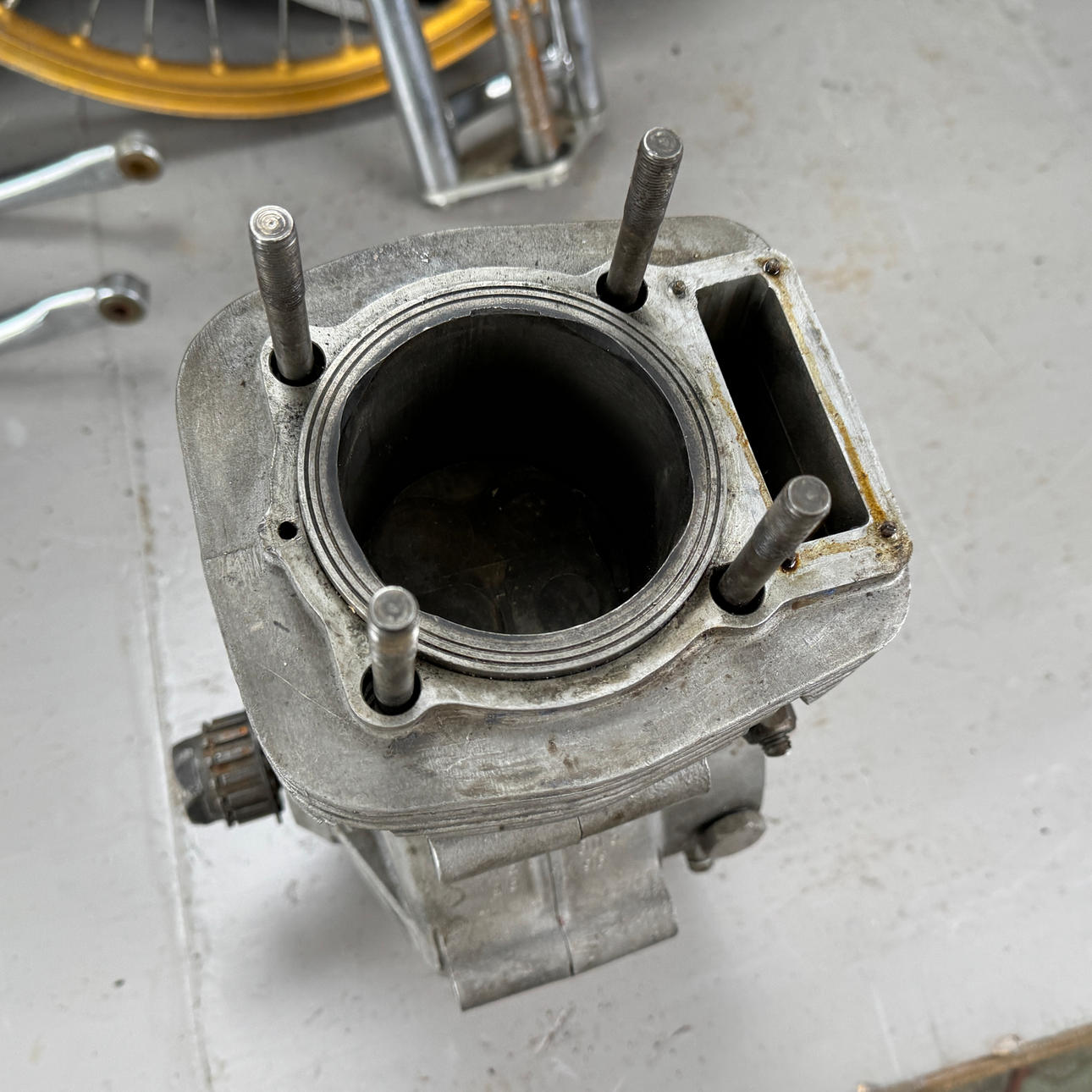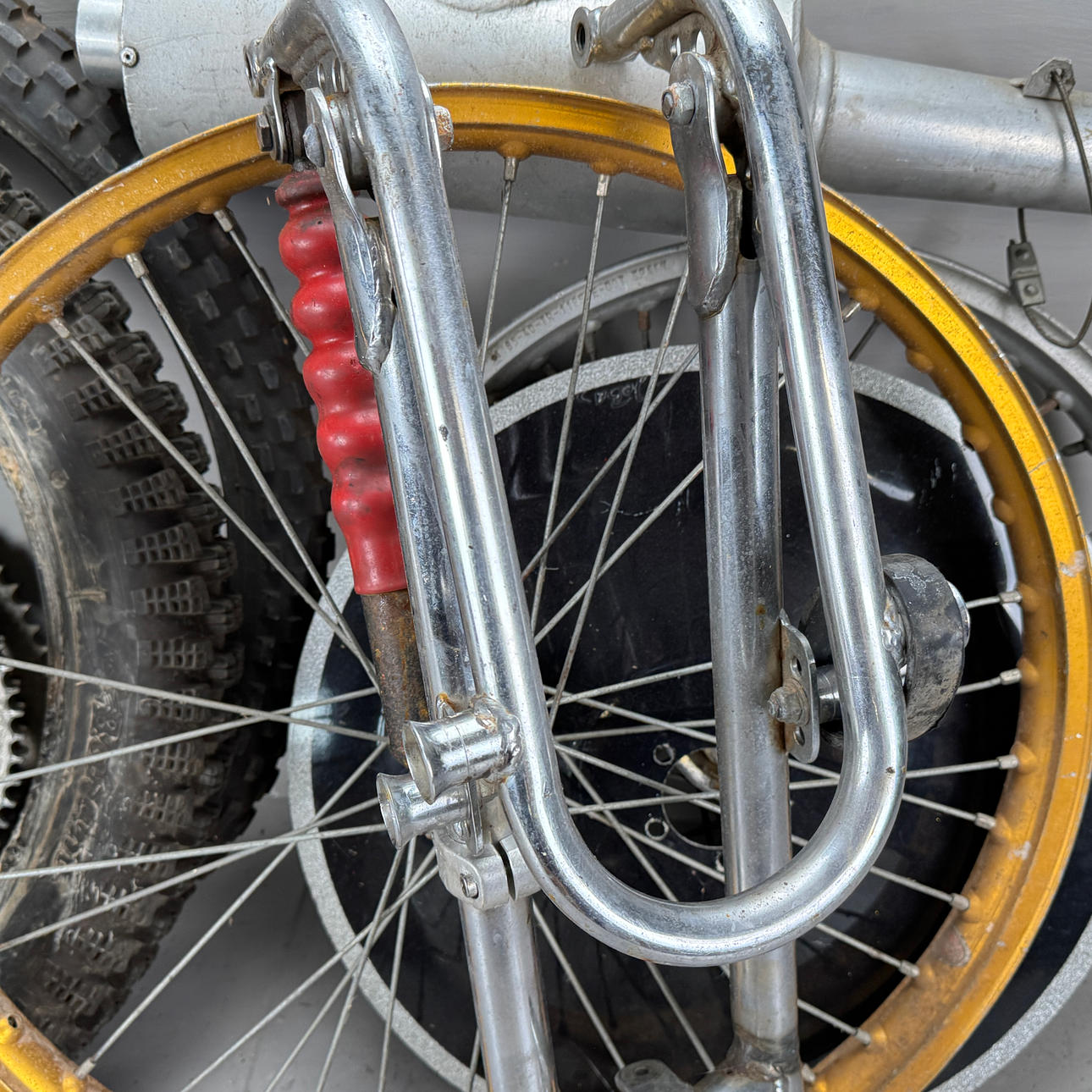 Cylinder, motorblock, ram, gaffel, hjul mm.