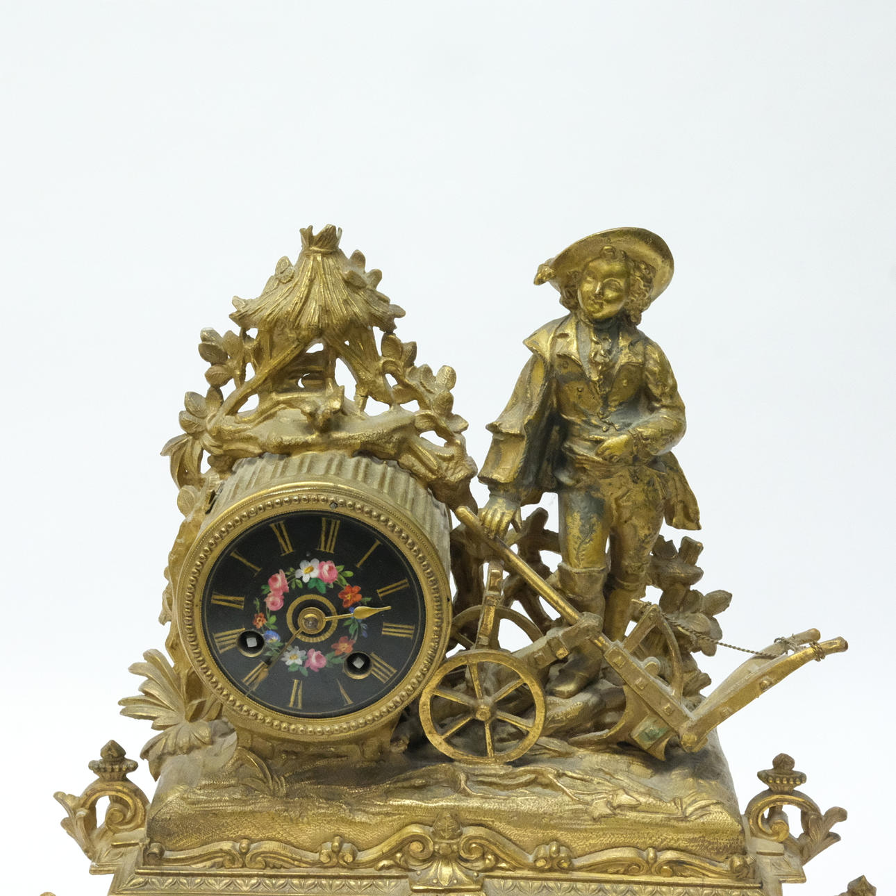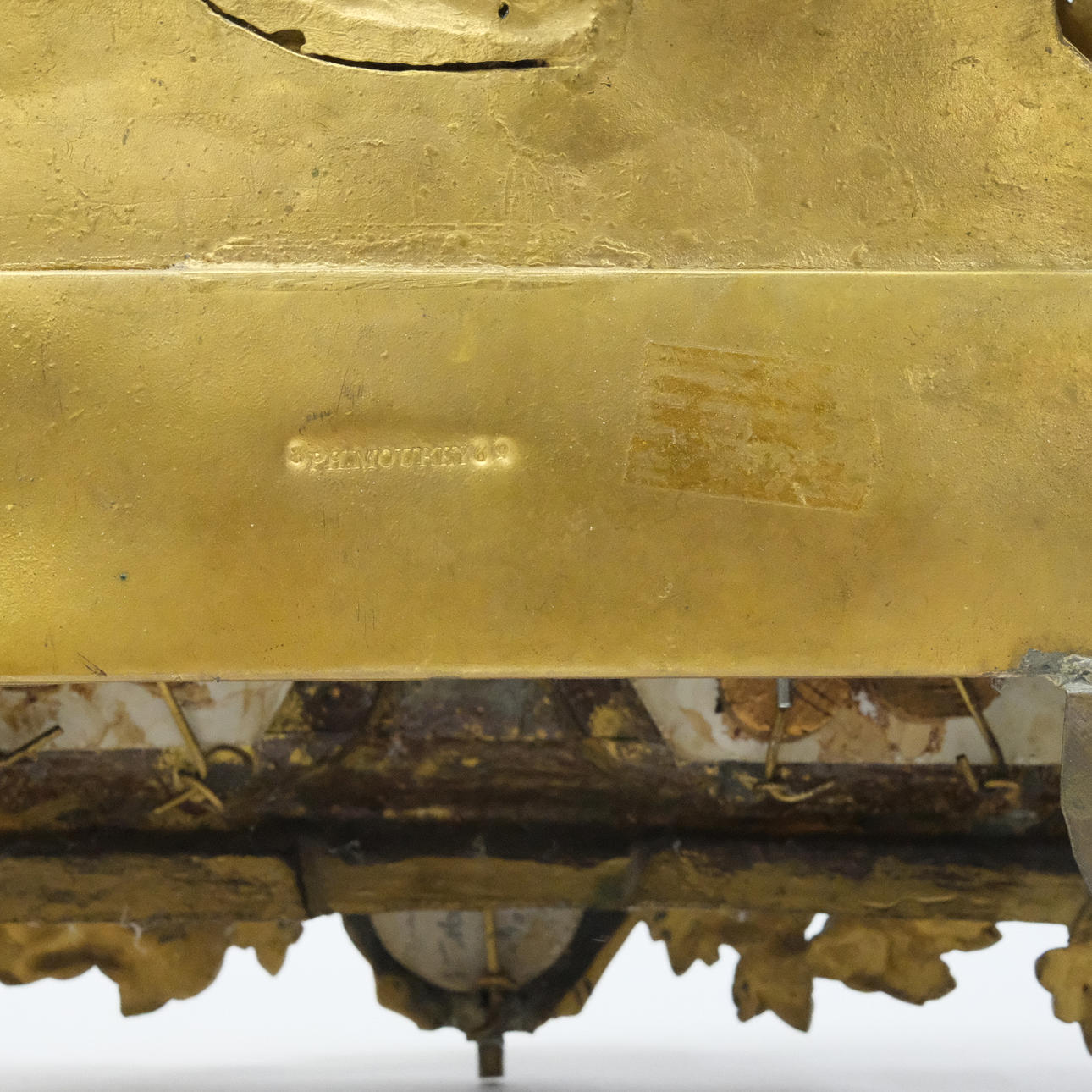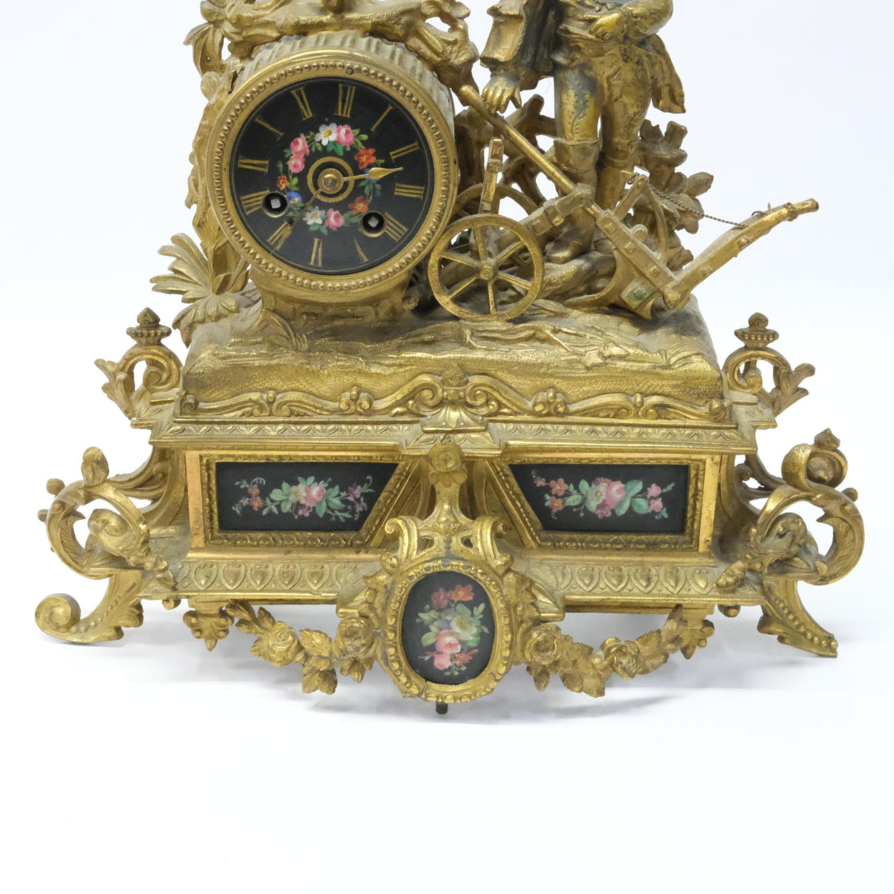 Bronserad, med infattade porslinsplattor med blomstermåleri, fodralet stämplar P.H. MOUREY, Frankrike, 1800-talets andra hälft, höjd 34 cm.