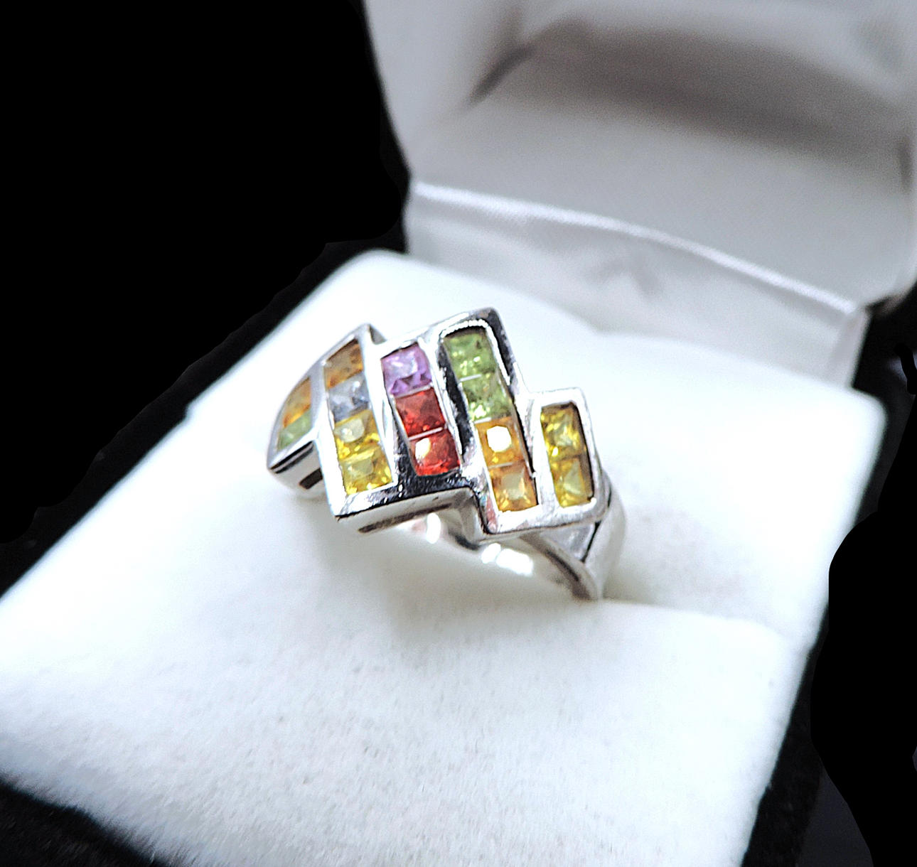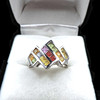 Ring i sterlingsilver med 15x2mm flerfärgade ädelstenar (tcw 1.05). Ringstorlek M.