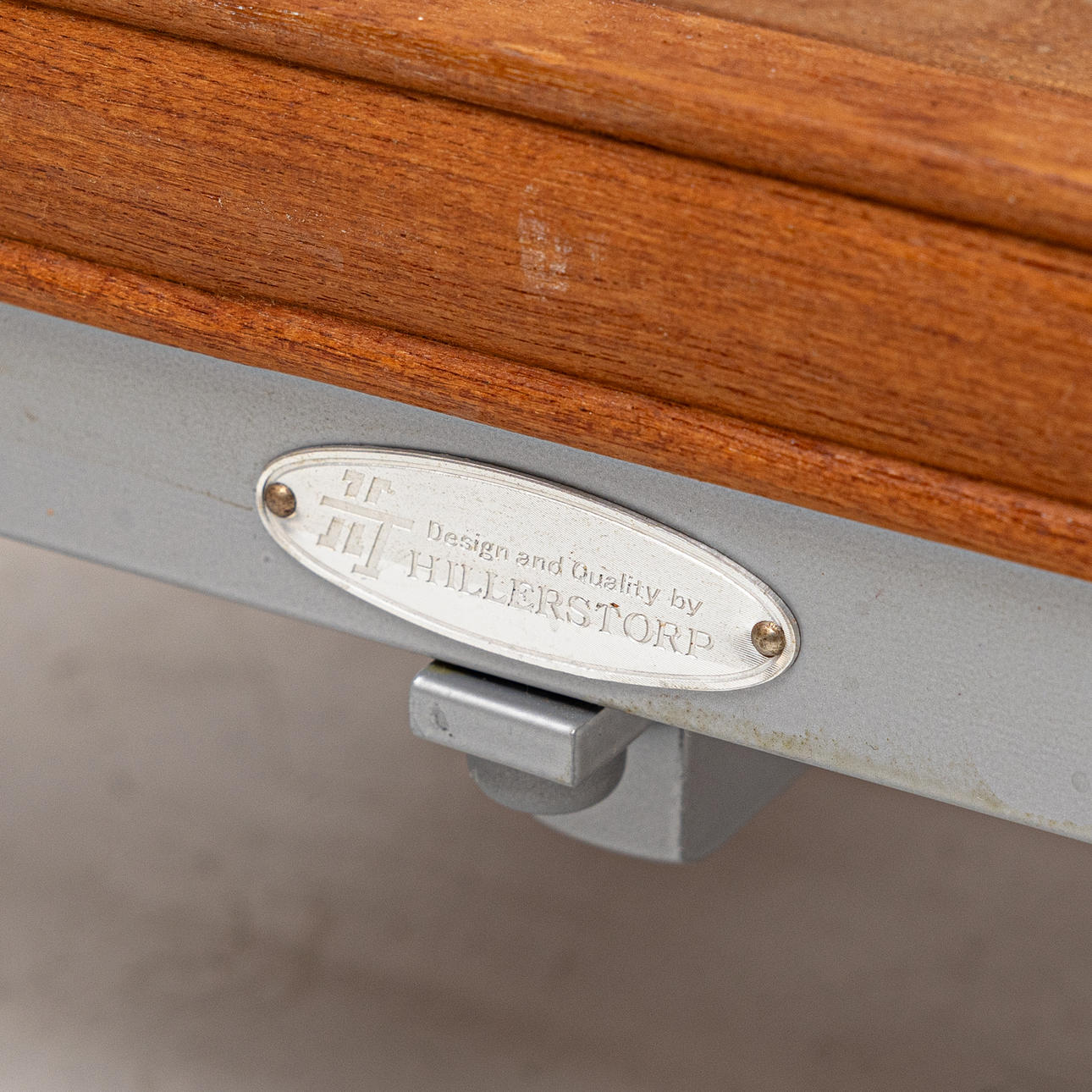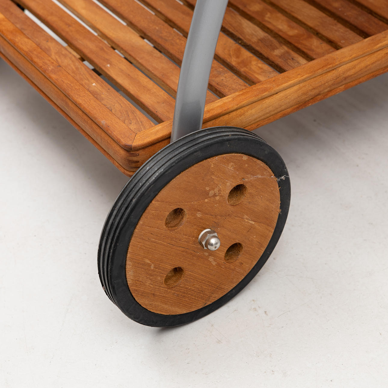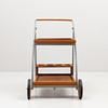 Betsat trä / lackerad metall. Hjulförsedd framtill.
