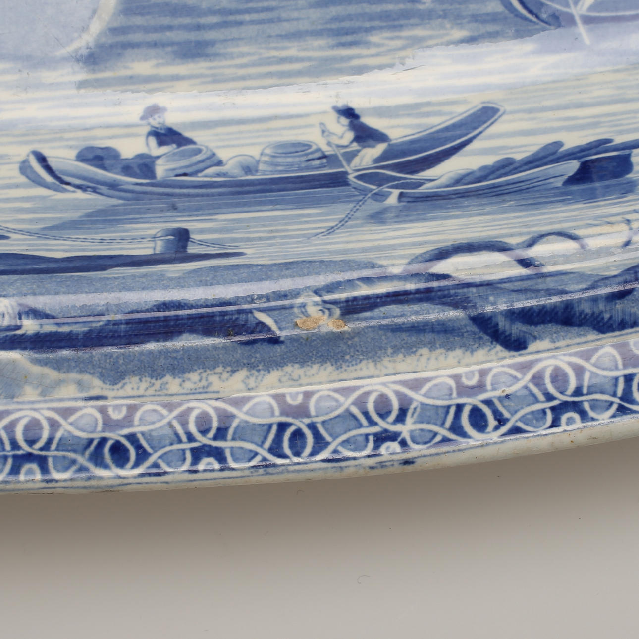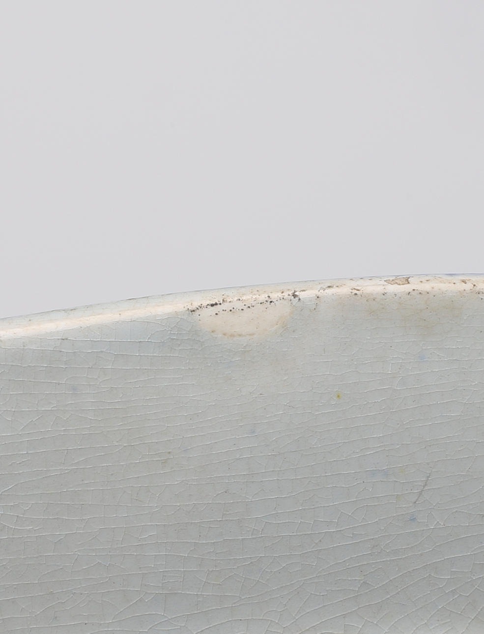 Varsin liten glasyrskada, uppläggsskål med glasyrsprickor undertill.