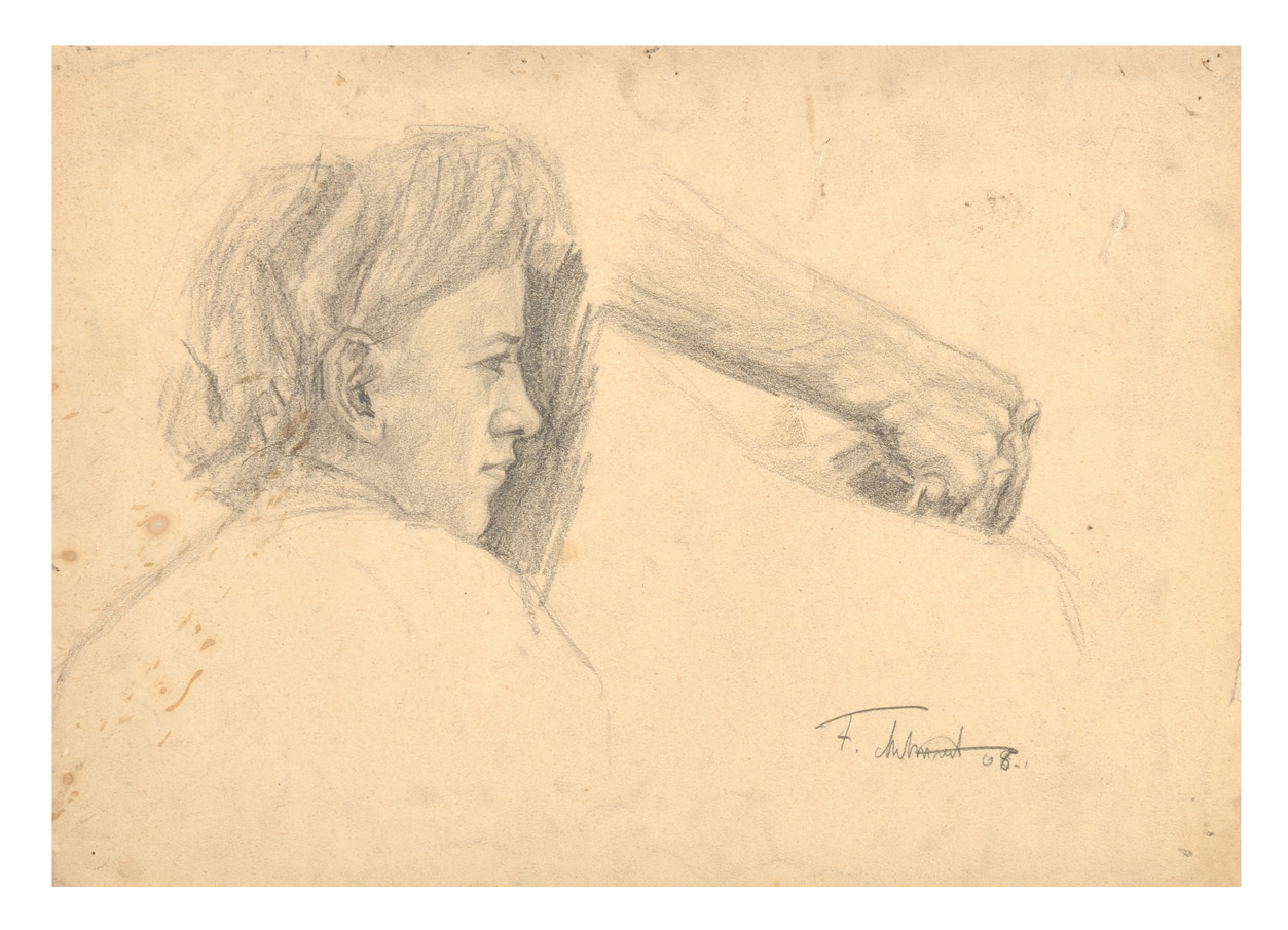 390399. FRITZ MEHNERT. Ansiktsstudie och handstudie i grafit.