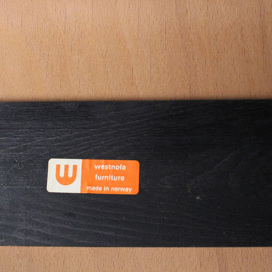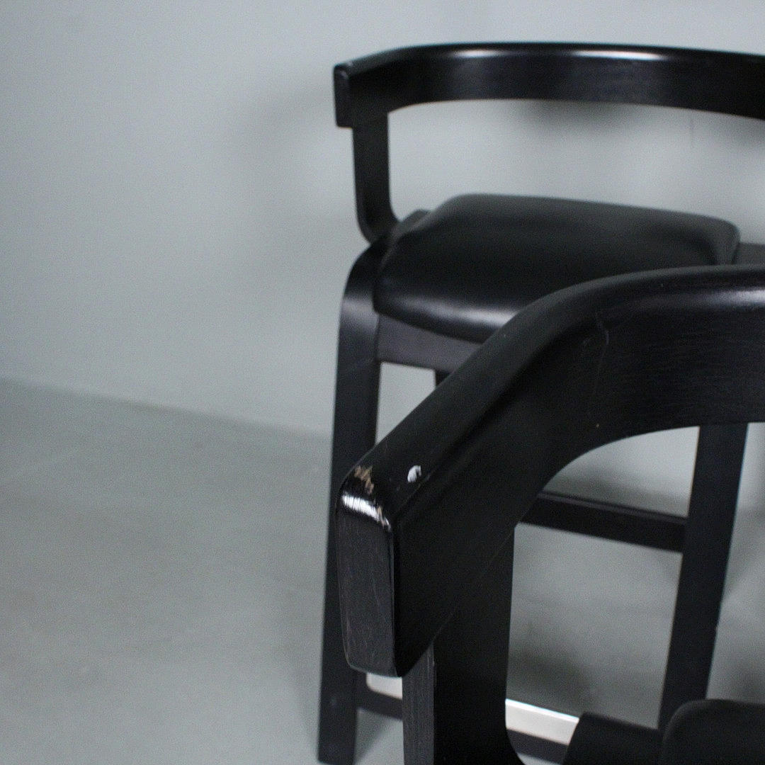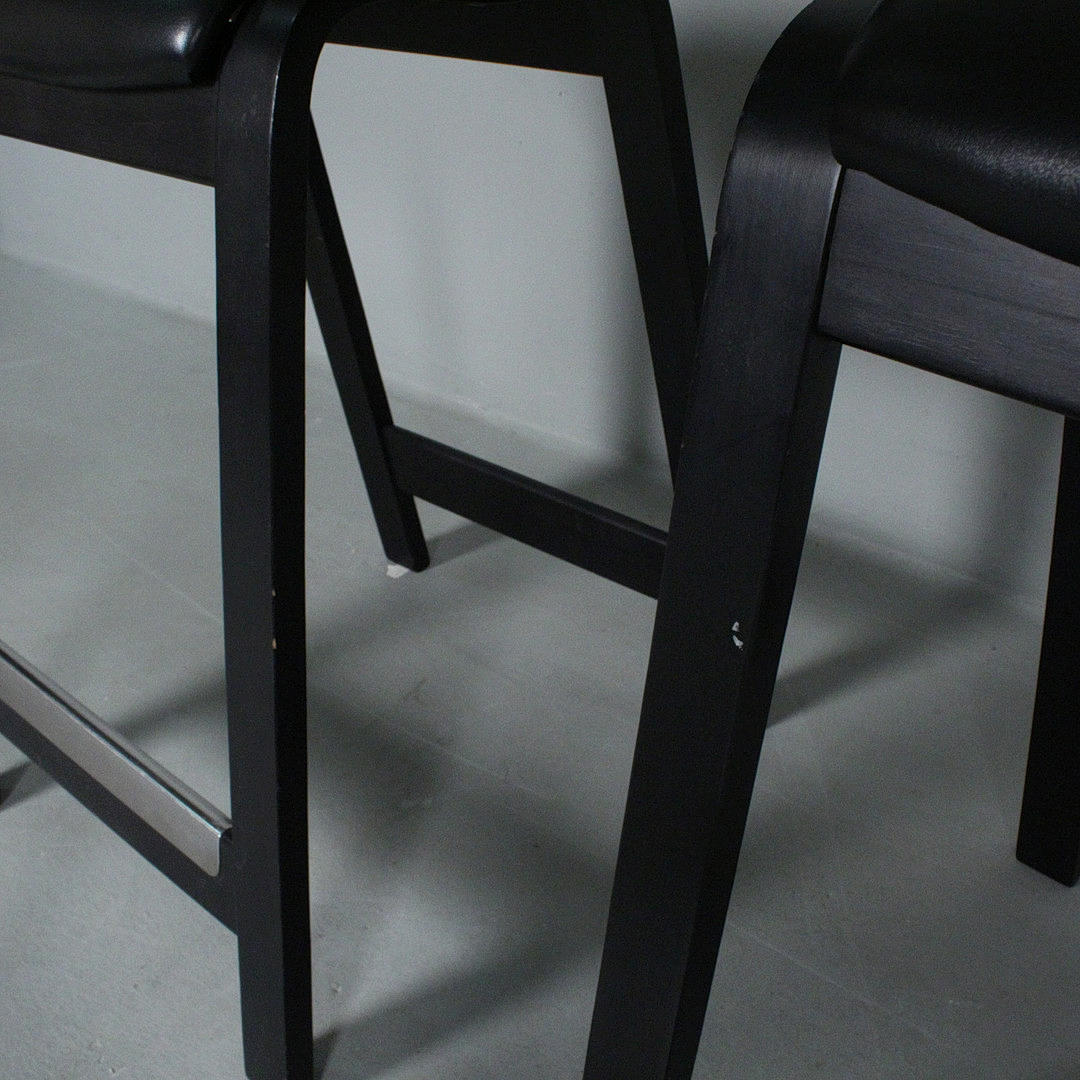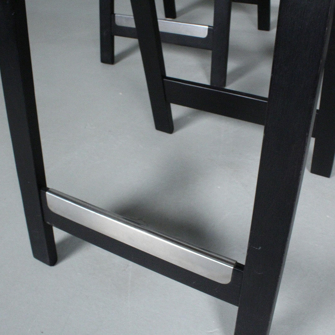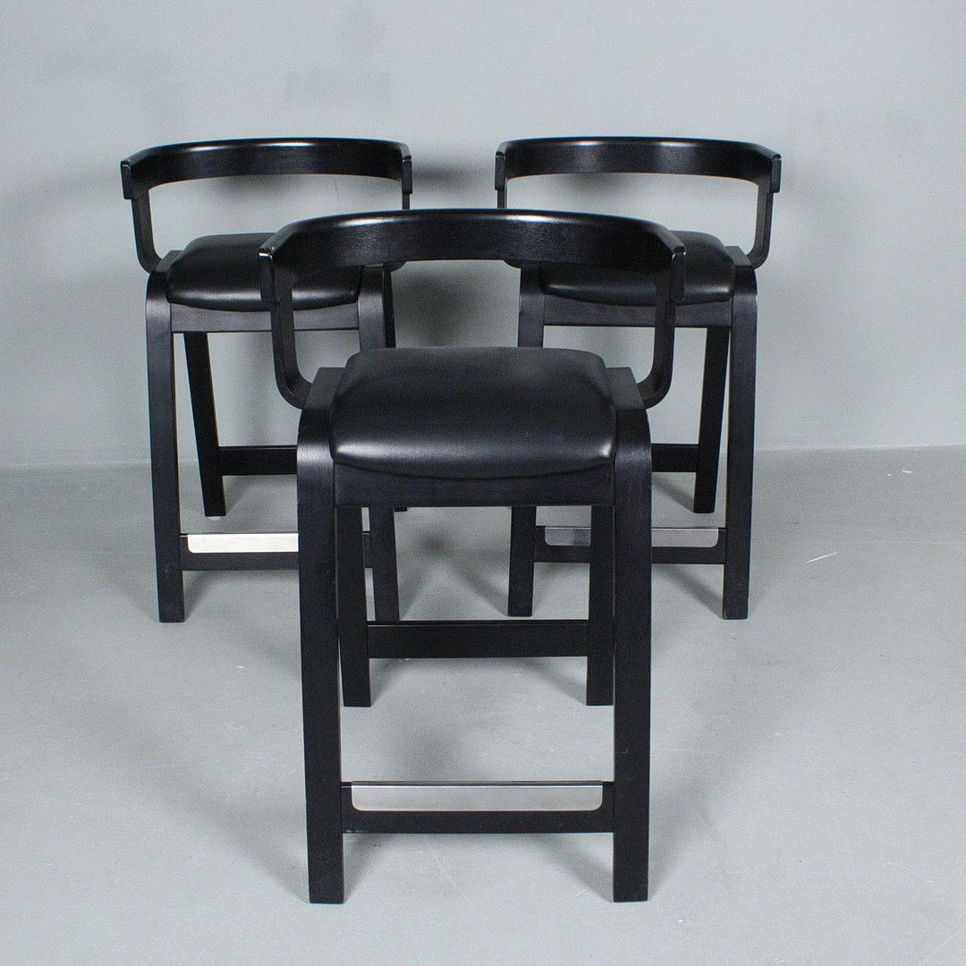 Westnofa, tre barstolar från 1970-talet, svartlackerad träkonstruktion, Mått ca.: h. 83 cm, sitshöjd 65 cm, W. 51 cm, djup 42 cm. .