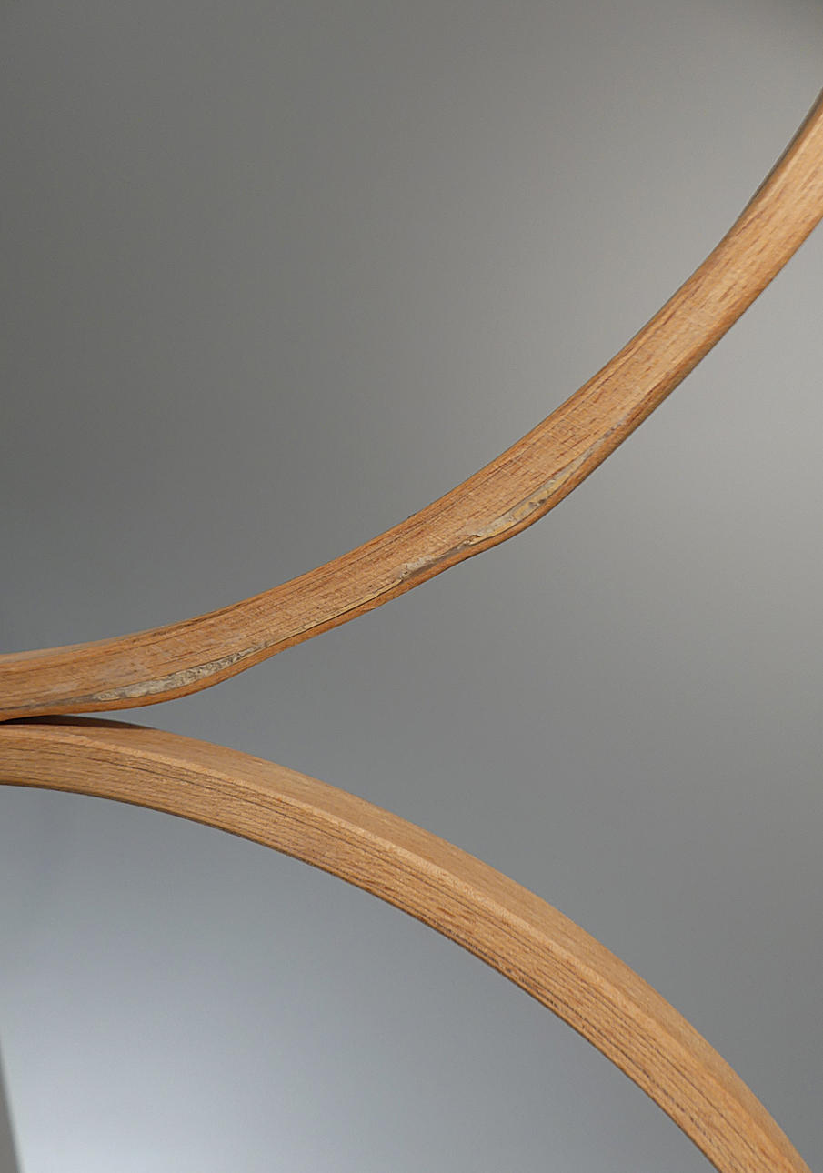 Bruksskick, mindre stötskador, sprickor och lagningar i lamineringen, en skruv genomgående, se bild.