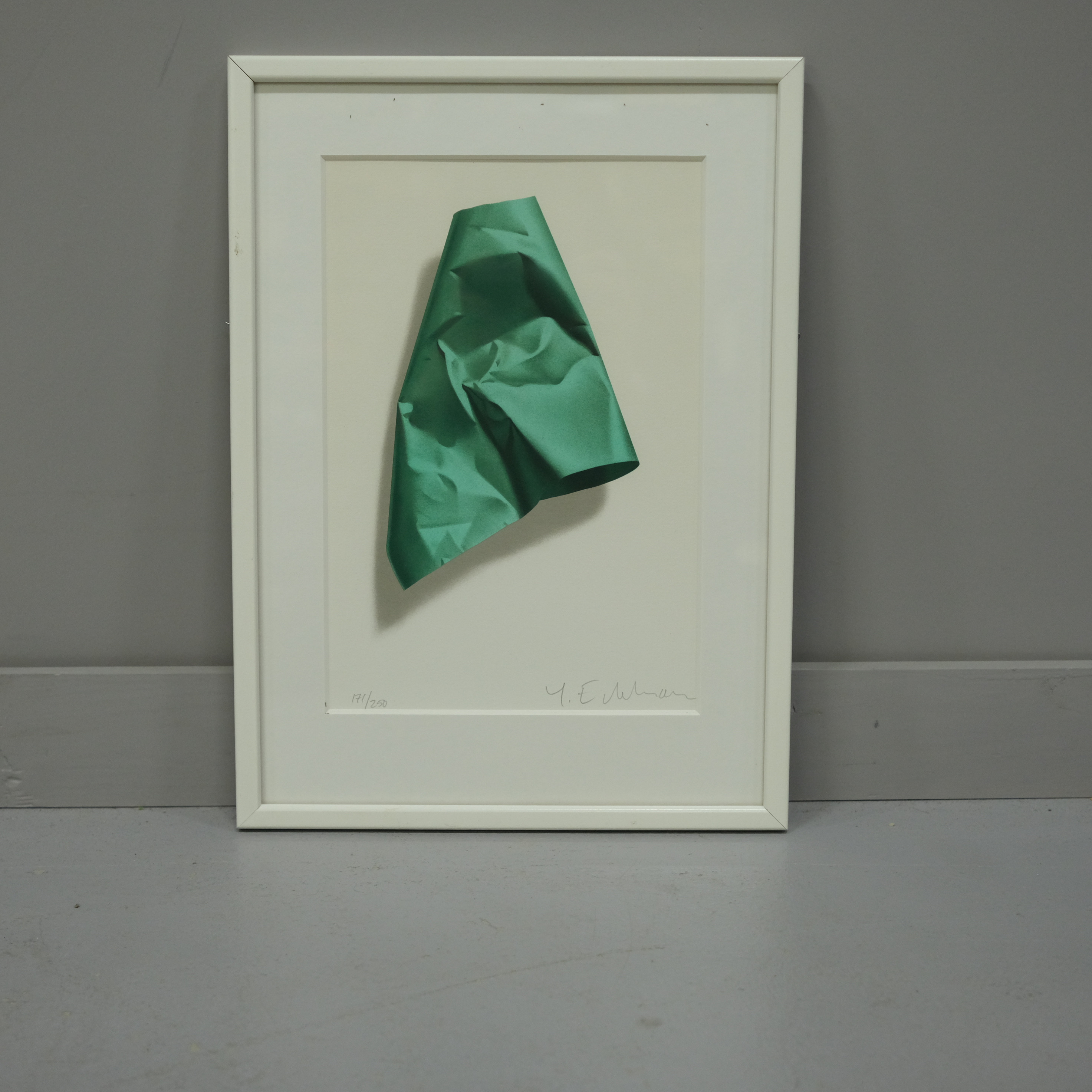 3908745. YRJÖ EDELMANN. SKRYNKLAT GRÖNT PAPPER.