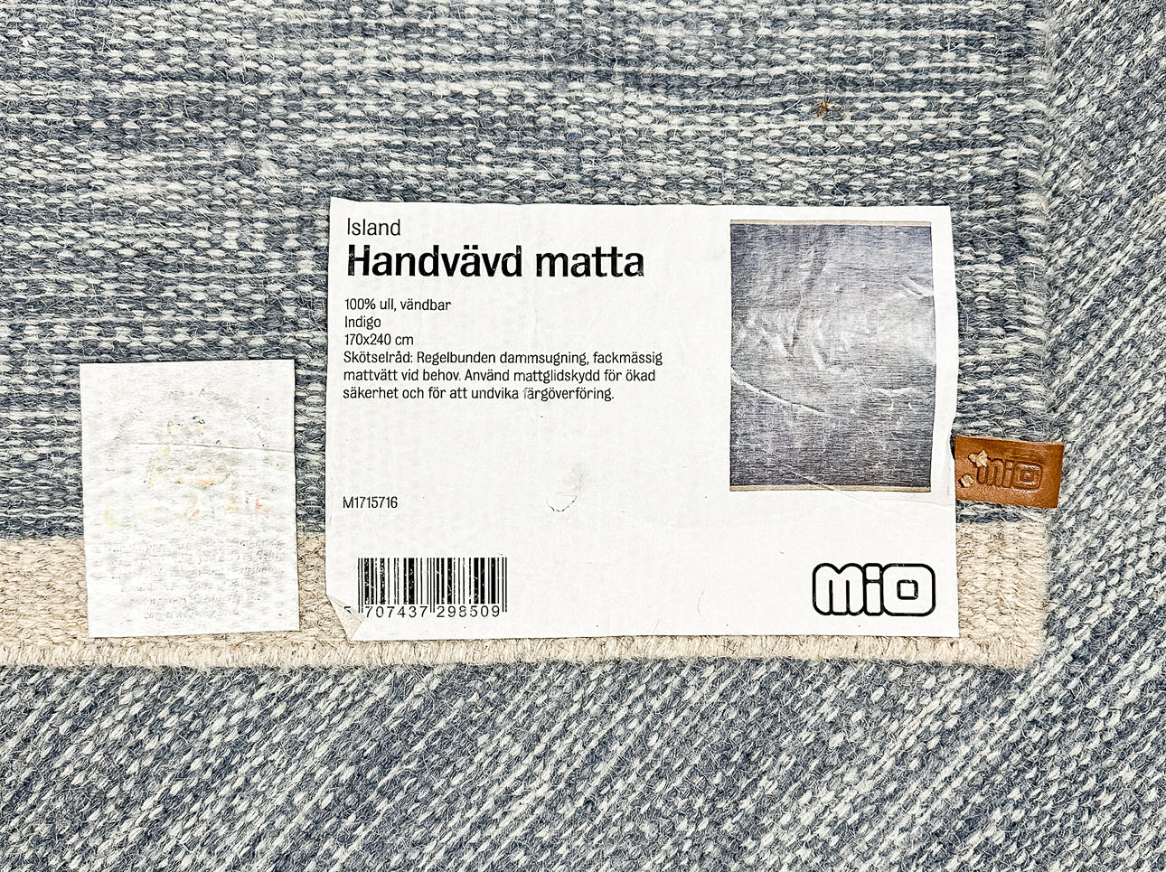 3914347. MATTA, ull, handgjord, vändbar, Indigo, Mio.