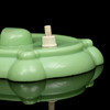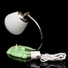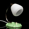 Fot av grön hårdplast. Kromad metall med kupa av opalglas. Ställbar skärm. Fotens undersida med hål för väggfäste. Höjd 21 cm.