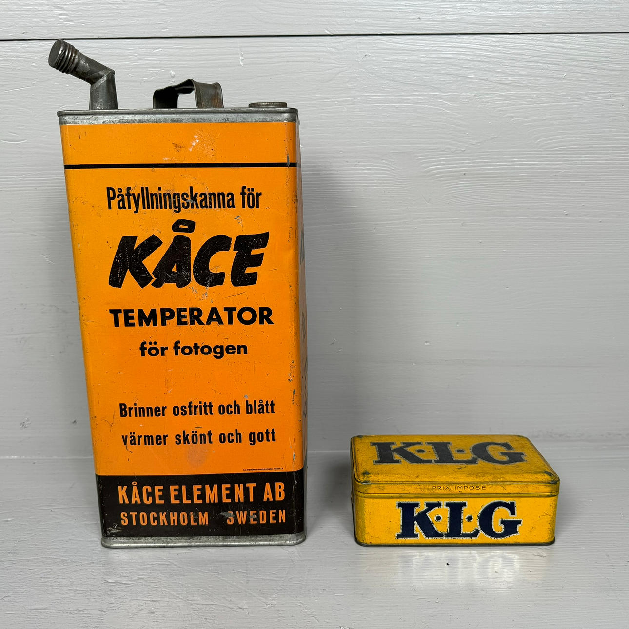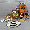 Bl.a plåtburkar, skylt DK, gjutjärnsmodeller m.m