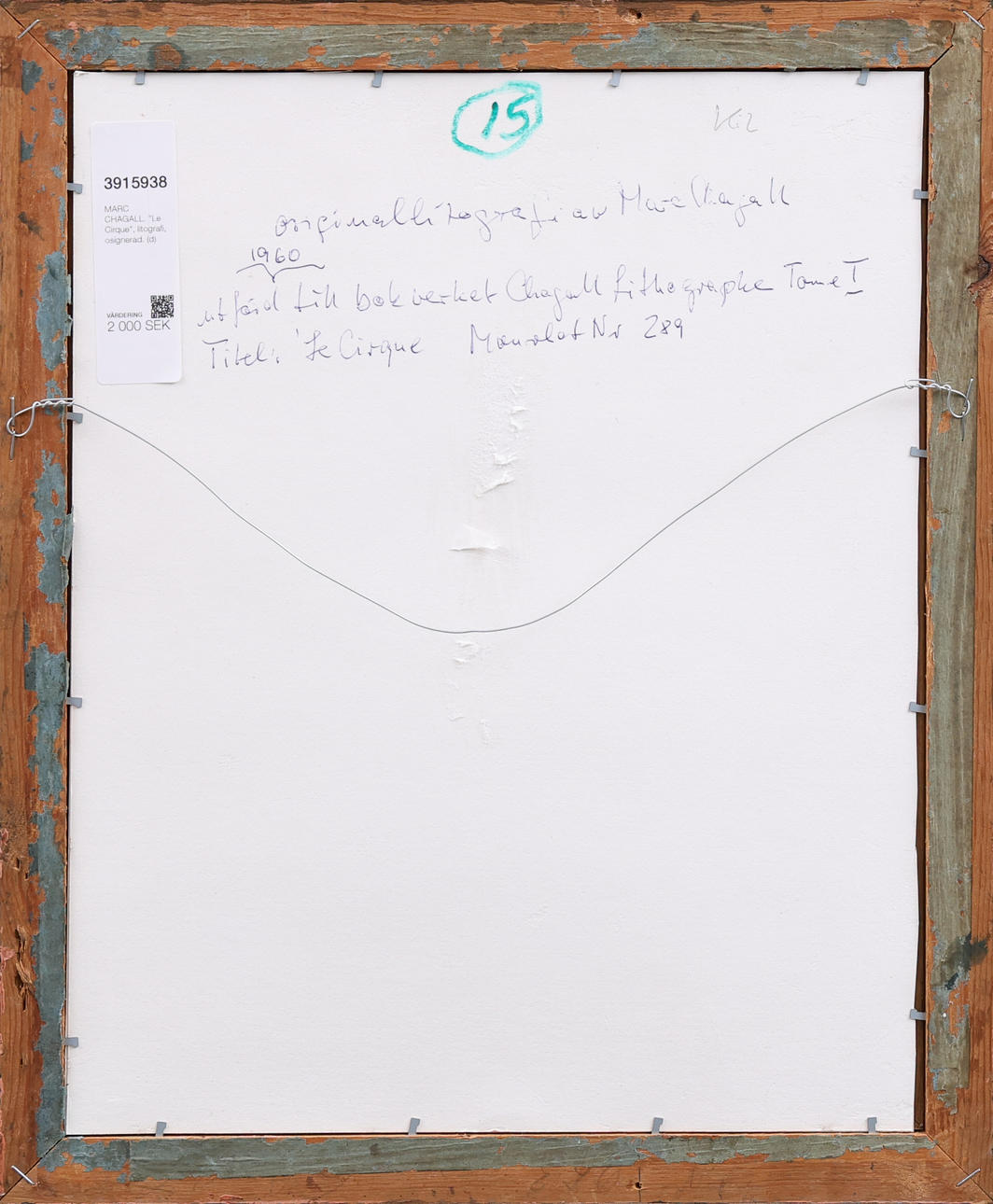 3915938. MARC CHAGALL. "Le Cirque", litografi, osignerad.