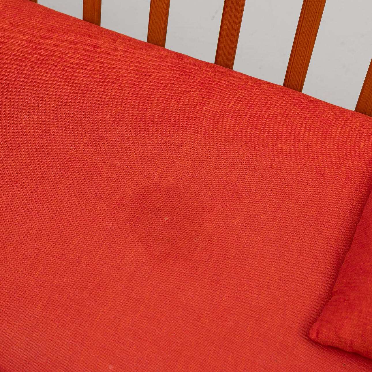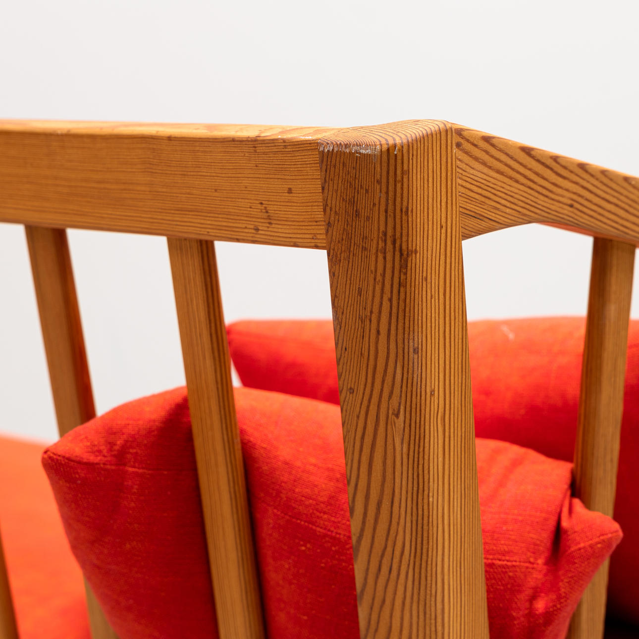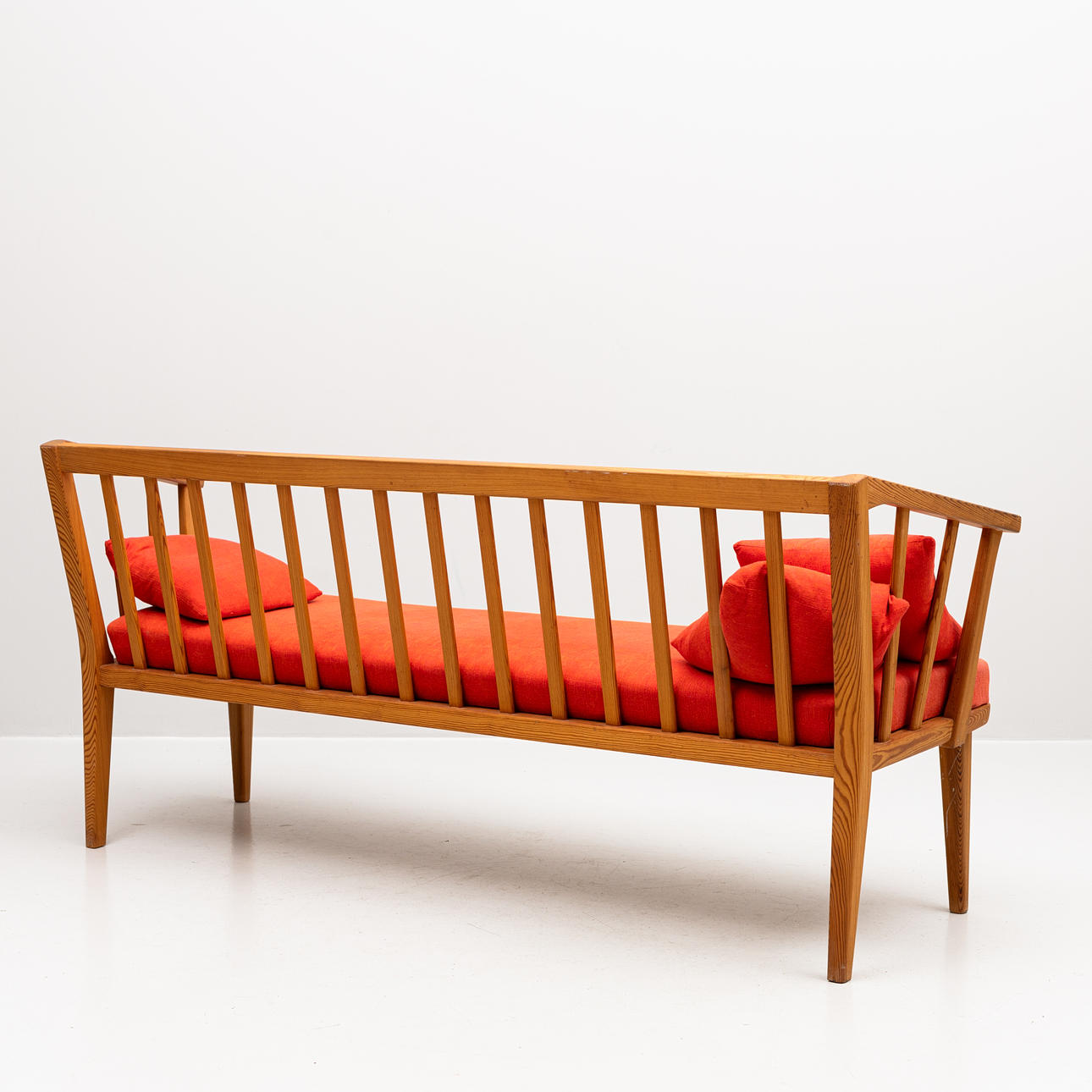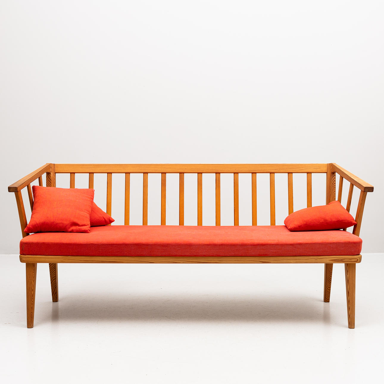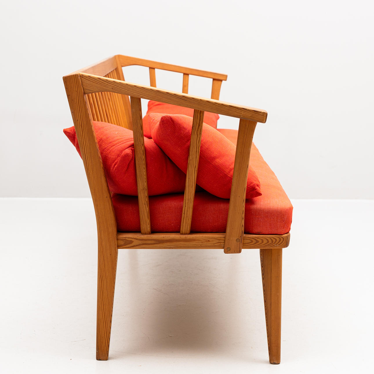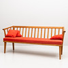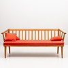 3917218. CARL MALMSTEN. Soffa "Visingsö" ek med röda dynor och kuddar.