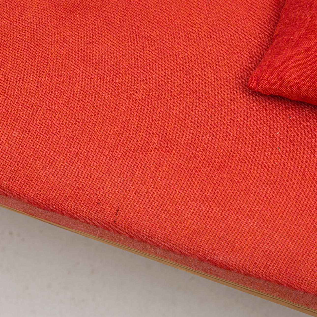CARL MALMSTEN. Soffa "Visingsö" ek med röda dynor och kuddar.
