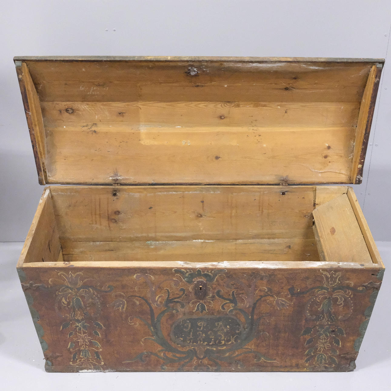 Dekor av blommor. Höjd 69cm. Längd 142cm. Bredd 63cm. Proveniens: Per-Axel Hylta, författare till boken "Svensk Allmogekonst", 2013.