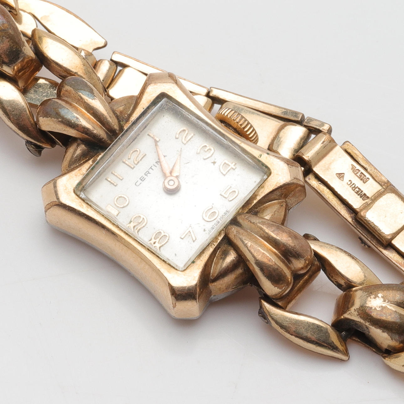 Damur, double, Certina, manuell. Ca 31x19 mm. Tissot, gulmetall, quartz, diameter ca 32 mm.