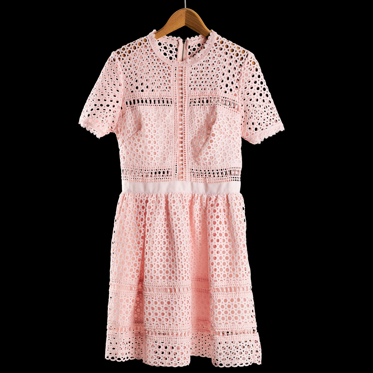 Ljusrosa spetsklänning med matchande underklänning, silverfärgad dragkedja i rygg. Etikettmärkt "BY MALINA COLLECTION", enl märkning storlek s.