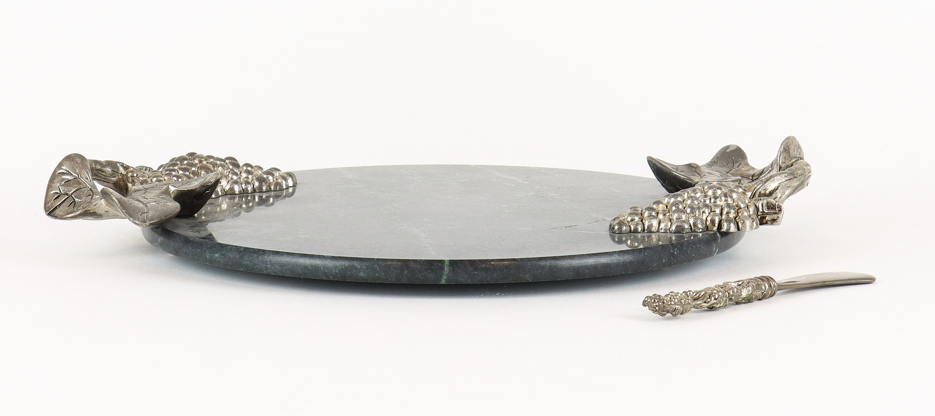 3921038. OSTBRICKA med kniv, sten och vitmetall.