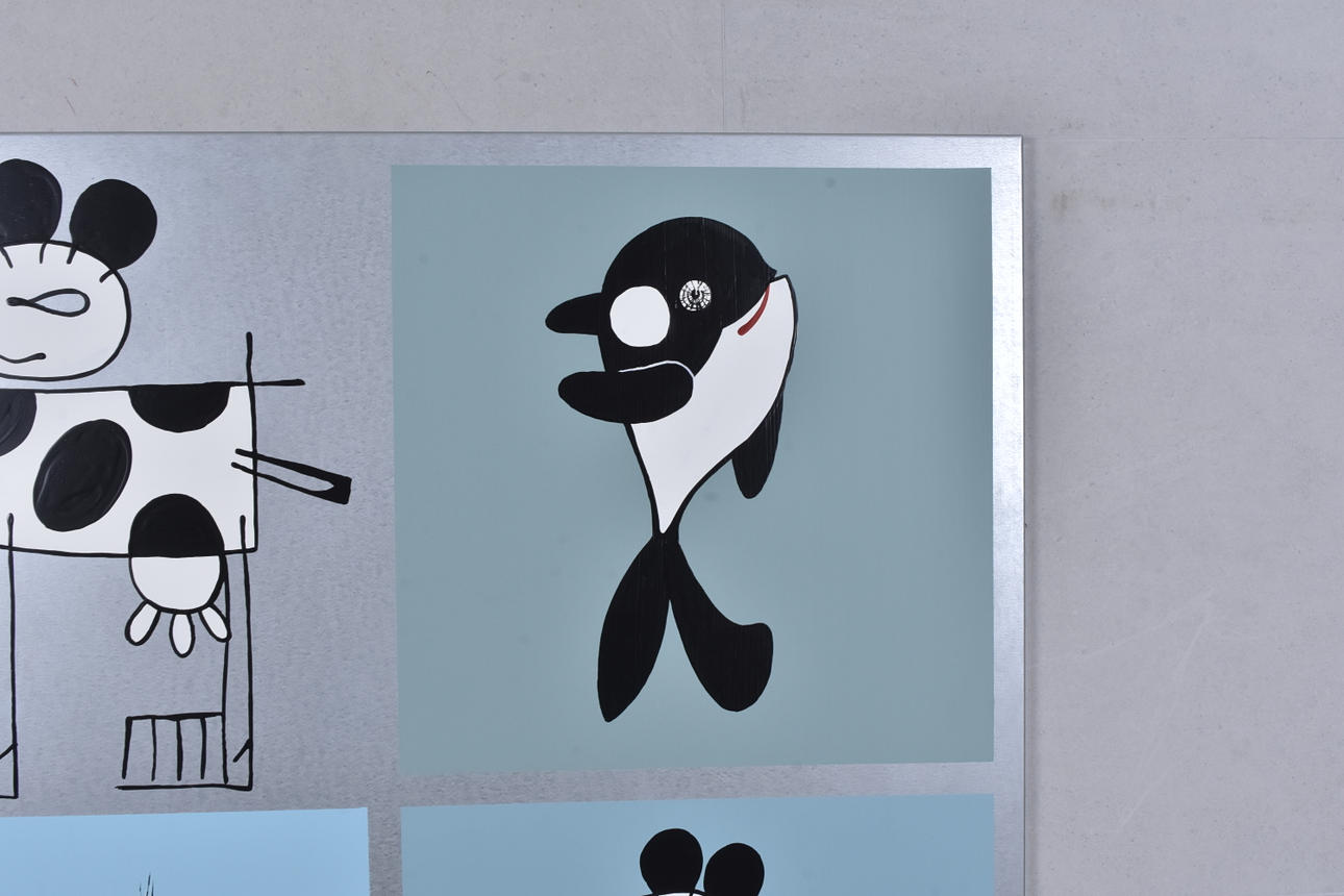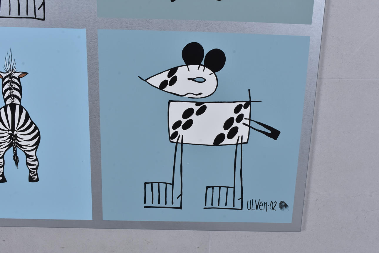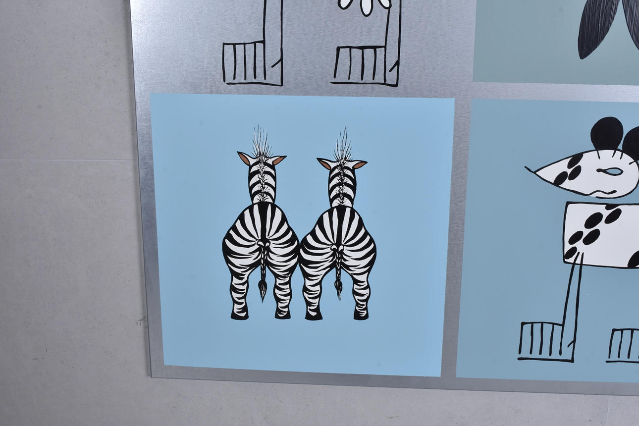 Komposition med kor delfin och zebror. Signerad och datera -02