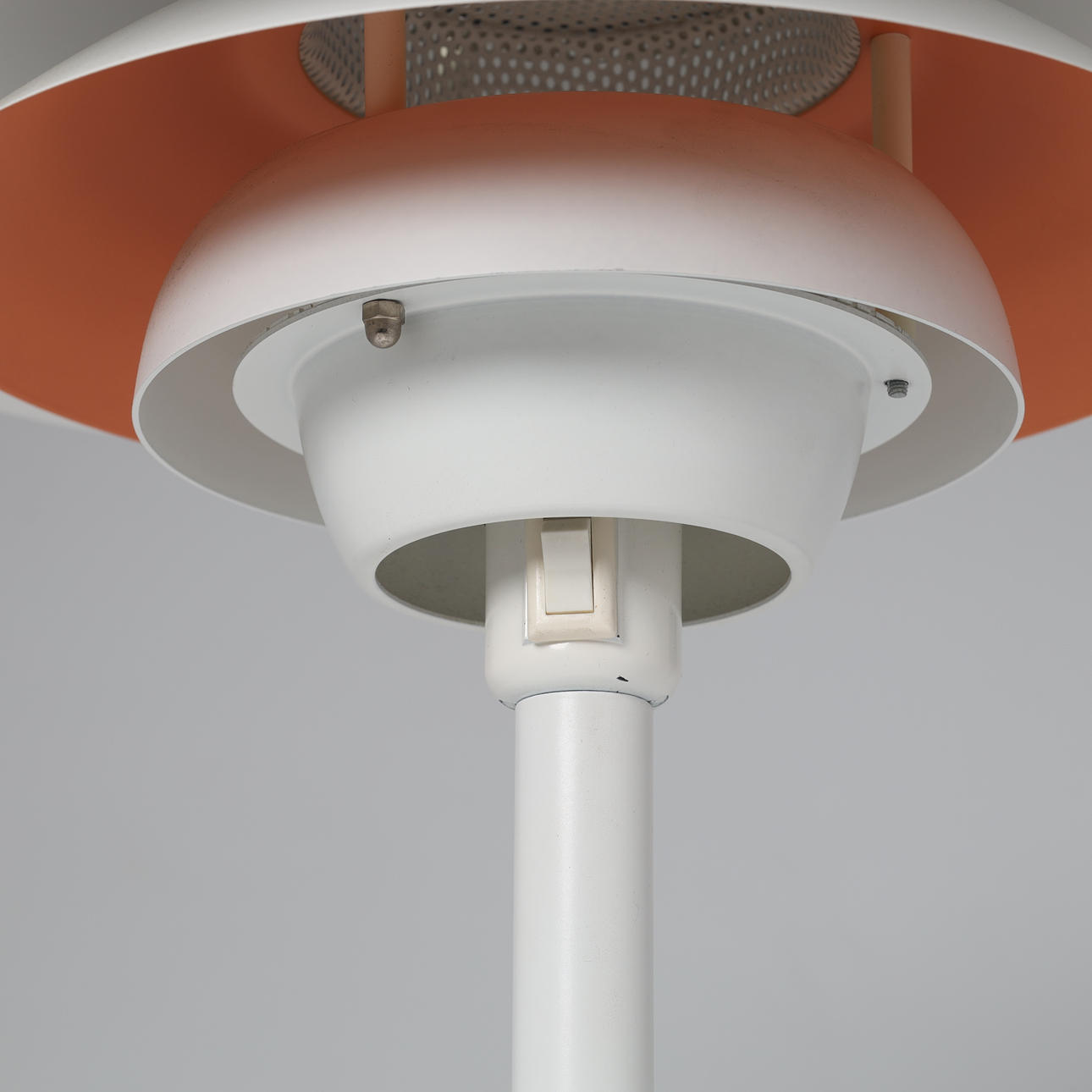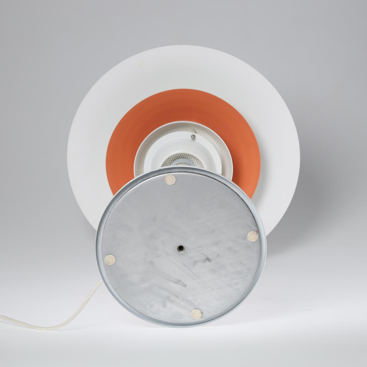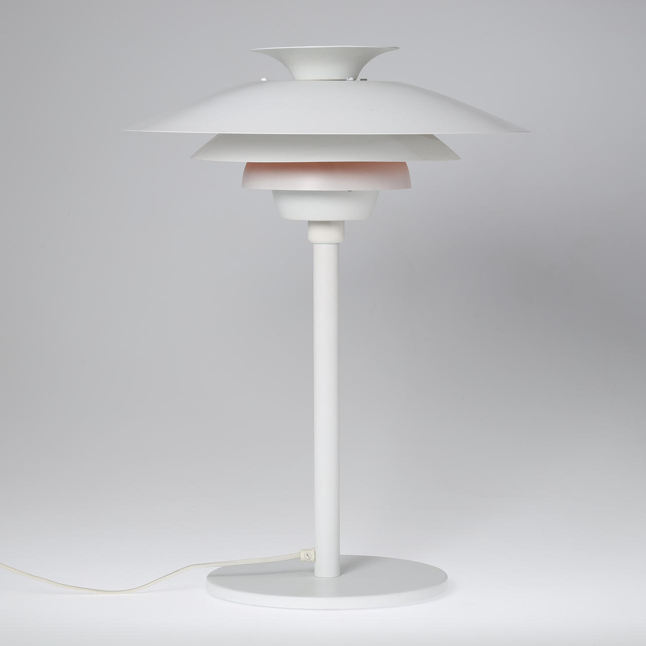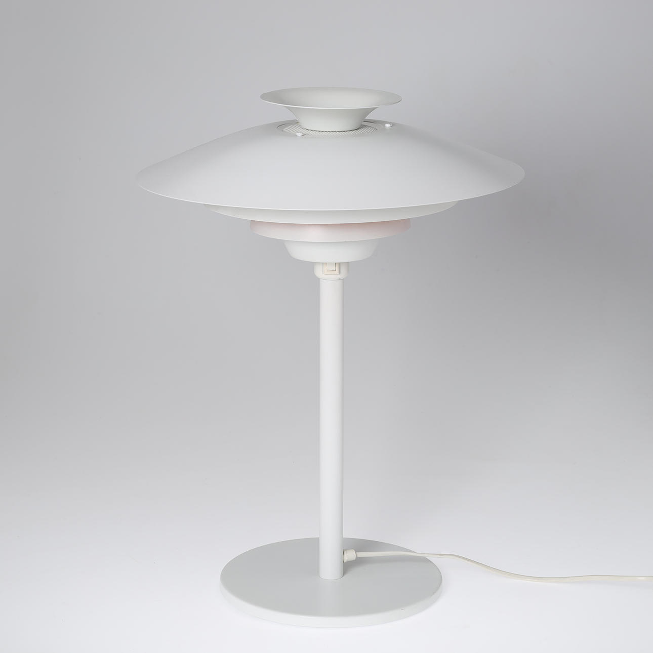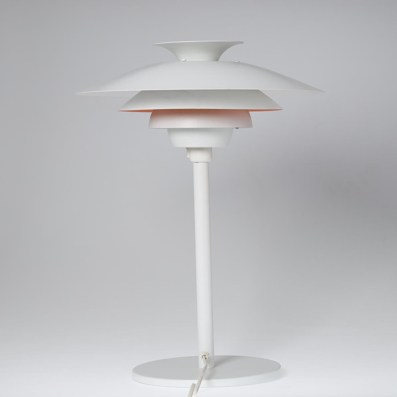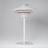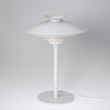Bordslampa tillverkad av vitlackerad metall. Markerad på innerskärmen.